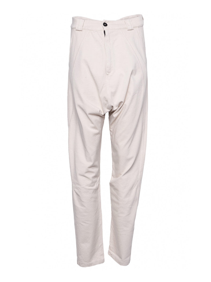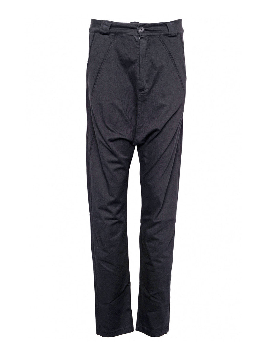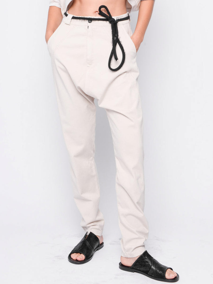 What more do I have to say pant.   Smart low slung crotch pant with side seam pockets and 2 concealed back pockets.  Belt loops, contrast button and zip.  Detail stitching.
