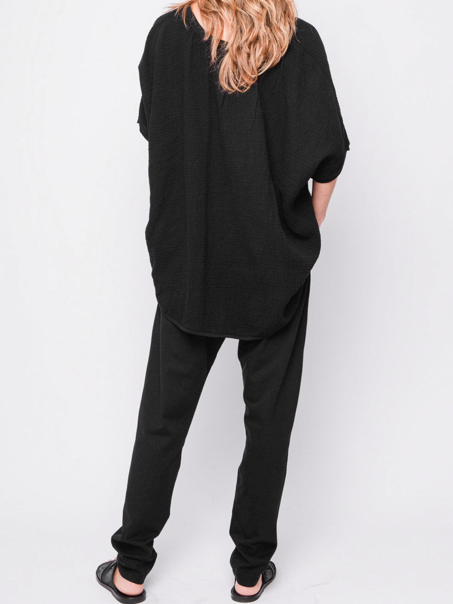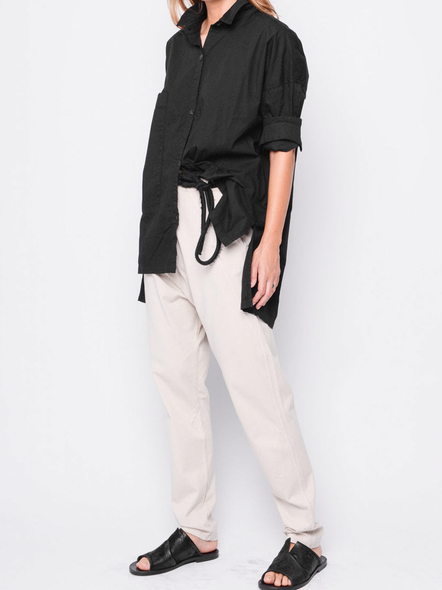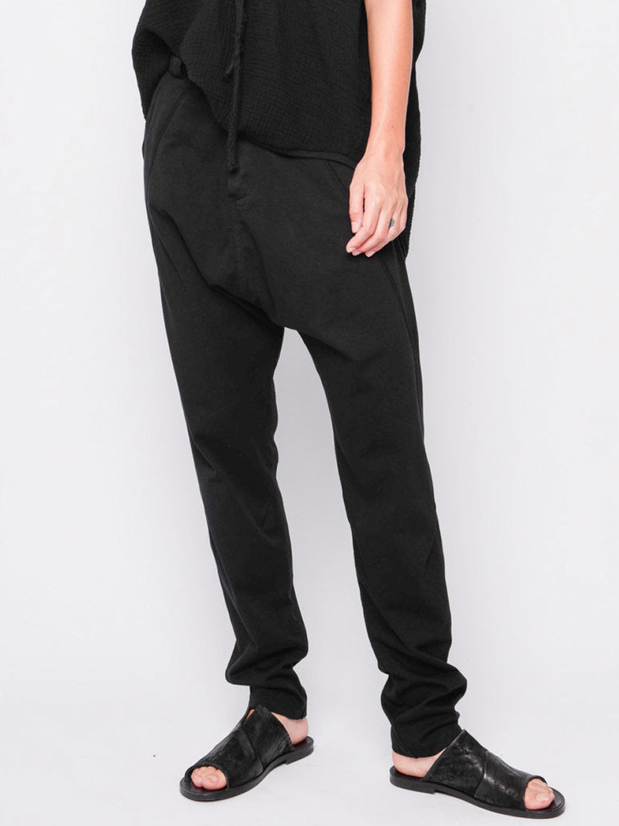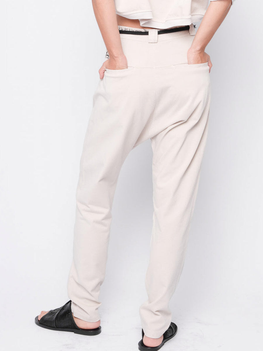What more do I have to say pant.   Smart low slung crotch pant with side seam pockets and 2 concealed back pockets.  Belt loops, contrast button and zip.  Detail stitching.