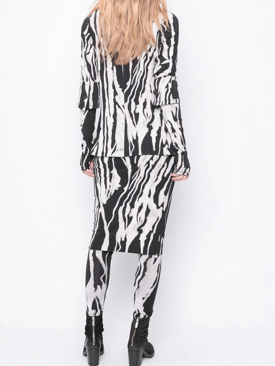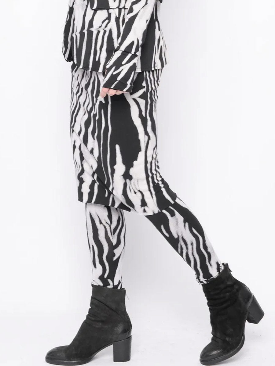Be bold and quirky with our Black "242.03.06" Skirt! Made from weighty jersey, it hugs your curves perfectly, while the double use fabric provides a comfortable fit. The wide waist panel offers a flattering silhouette, complemented by a narrow hem. And let's not forget the fun black and white print!