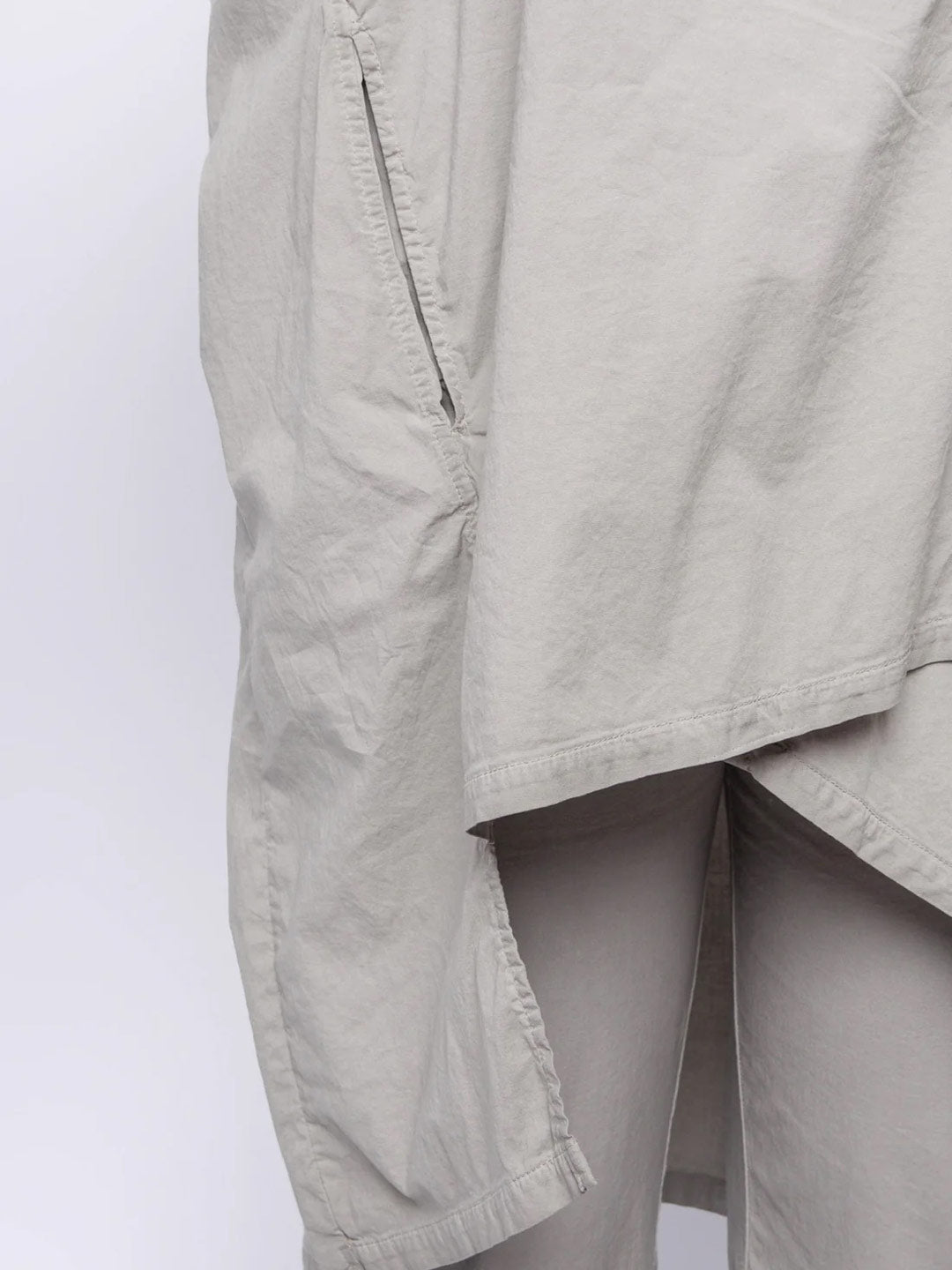 Made from lightweight cotton, this oversize long blouse in Pebble boasts a subtle asymmetric button closure and drop shoulders - perfect for a comfortable slouchy look. The standup collar, deep cuffs, and side pockets add extra flair to this must-have piece.
