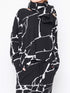 Bold and dramatic asymmetric black and white abstract printed cotton mix top