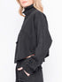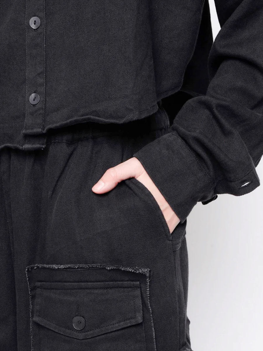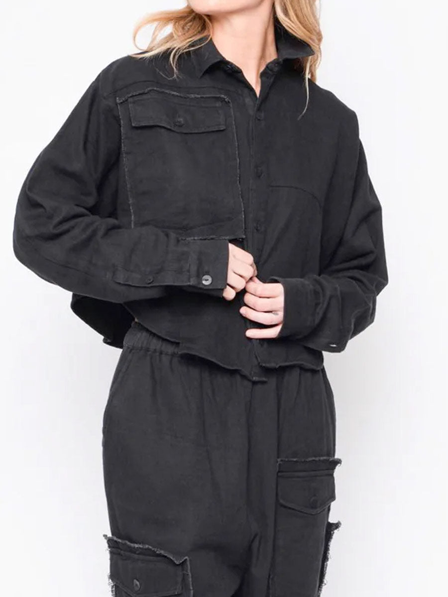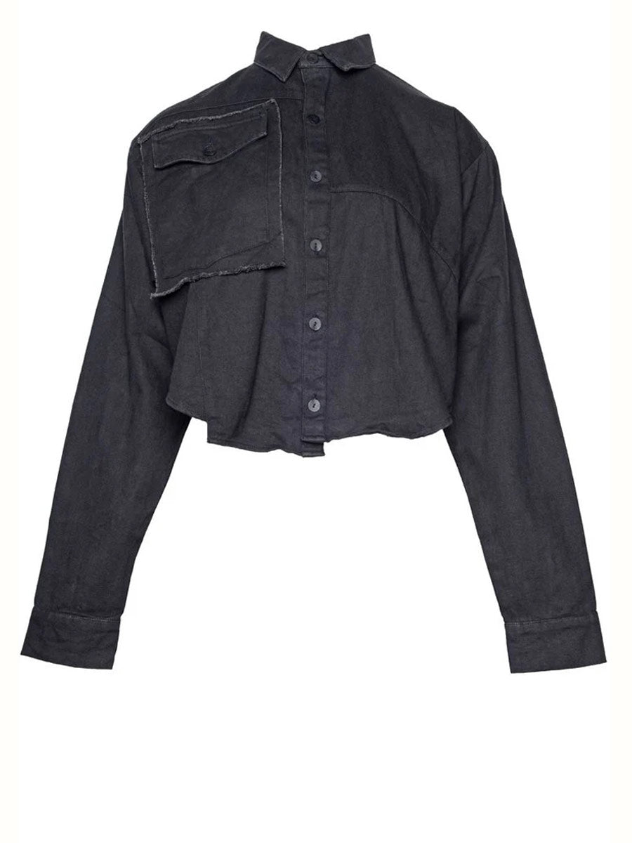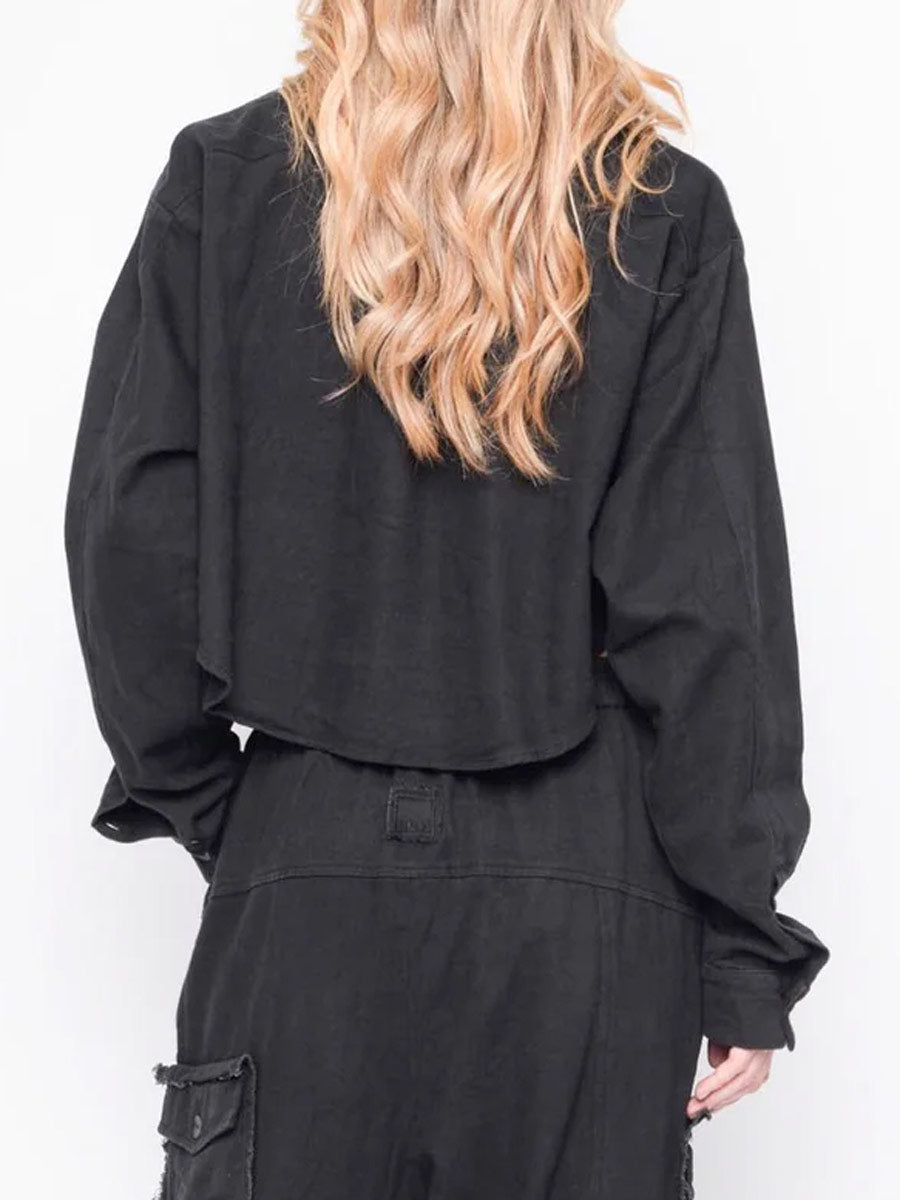 Faded black denim style short shirt with long sleeves