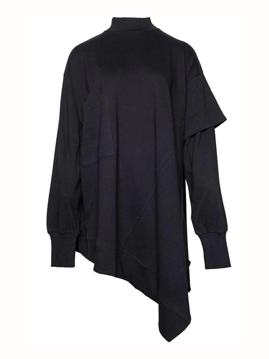 Japanese influenced contemporary black organic cotton asymmetric tunic