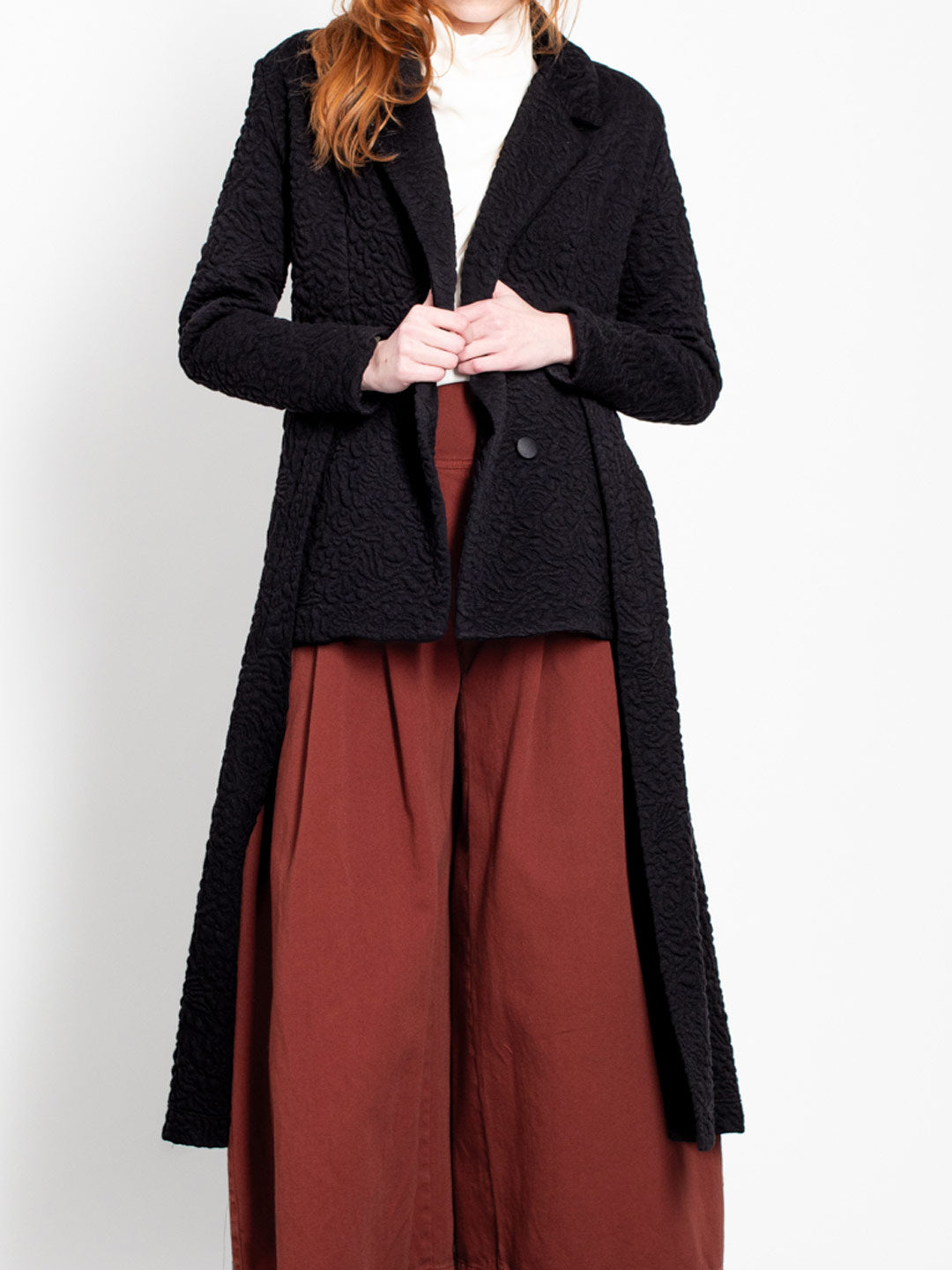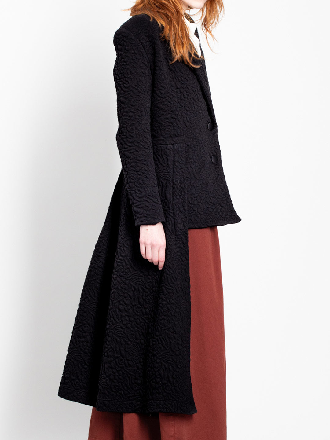 Indulge in the eccentric elegance of the Gaffer&Fluf "Ct95081" coat/Jacket. Crafted from soft cotton jacquard fabric, this double breasted jacket features a unique short front and long back hemline, for a striking silhouette. Semi-fitted at the top with slash pockets, it is the perfect blend of comfort and style.