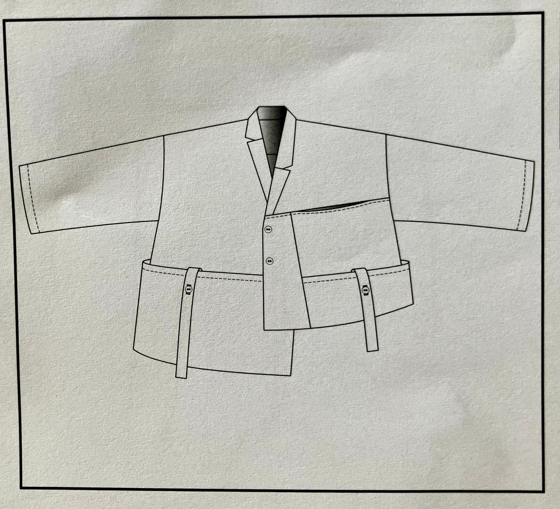 Ultra cool, asymmetric blazer in distictinctive black and grey stripe cotton linen mix, with Japanese influence styling