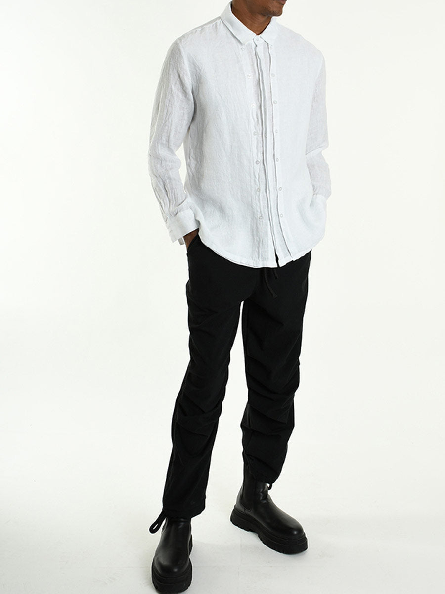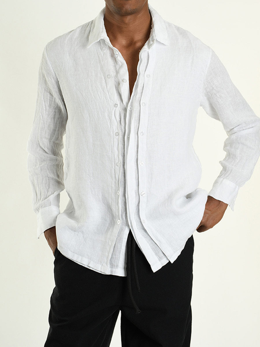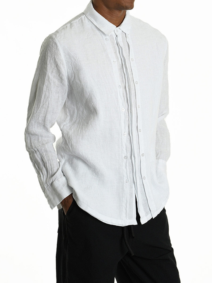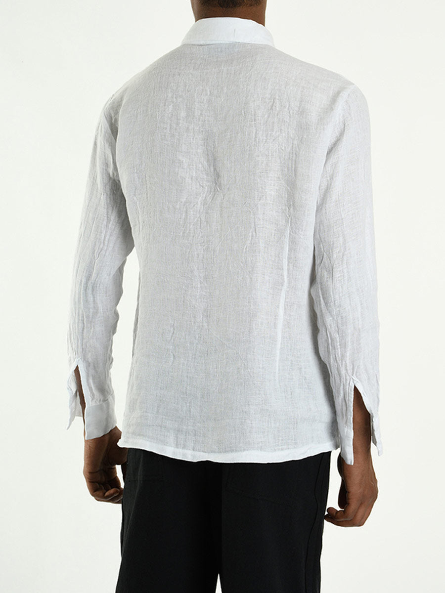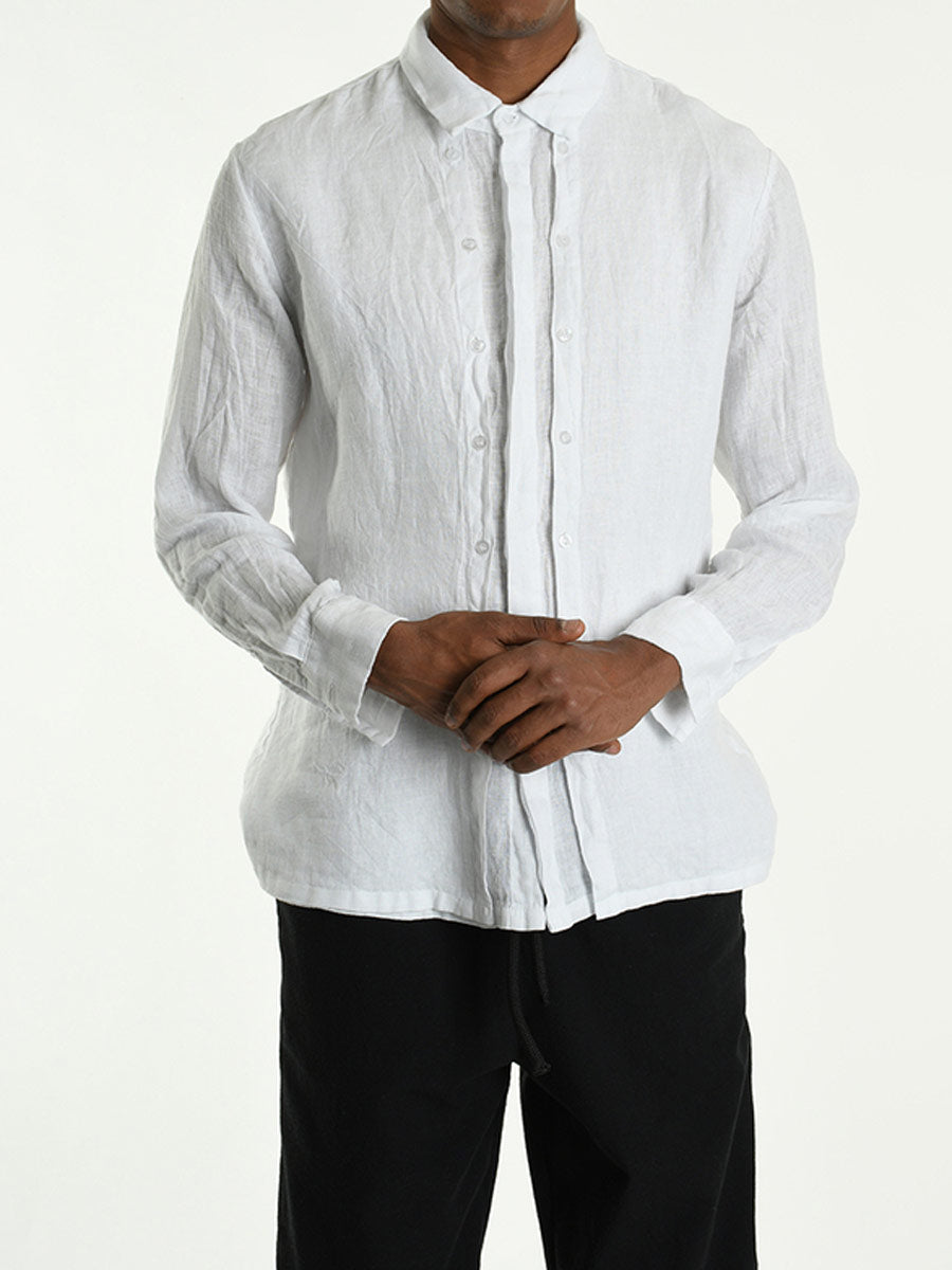 Stylishly understated white linen shirt