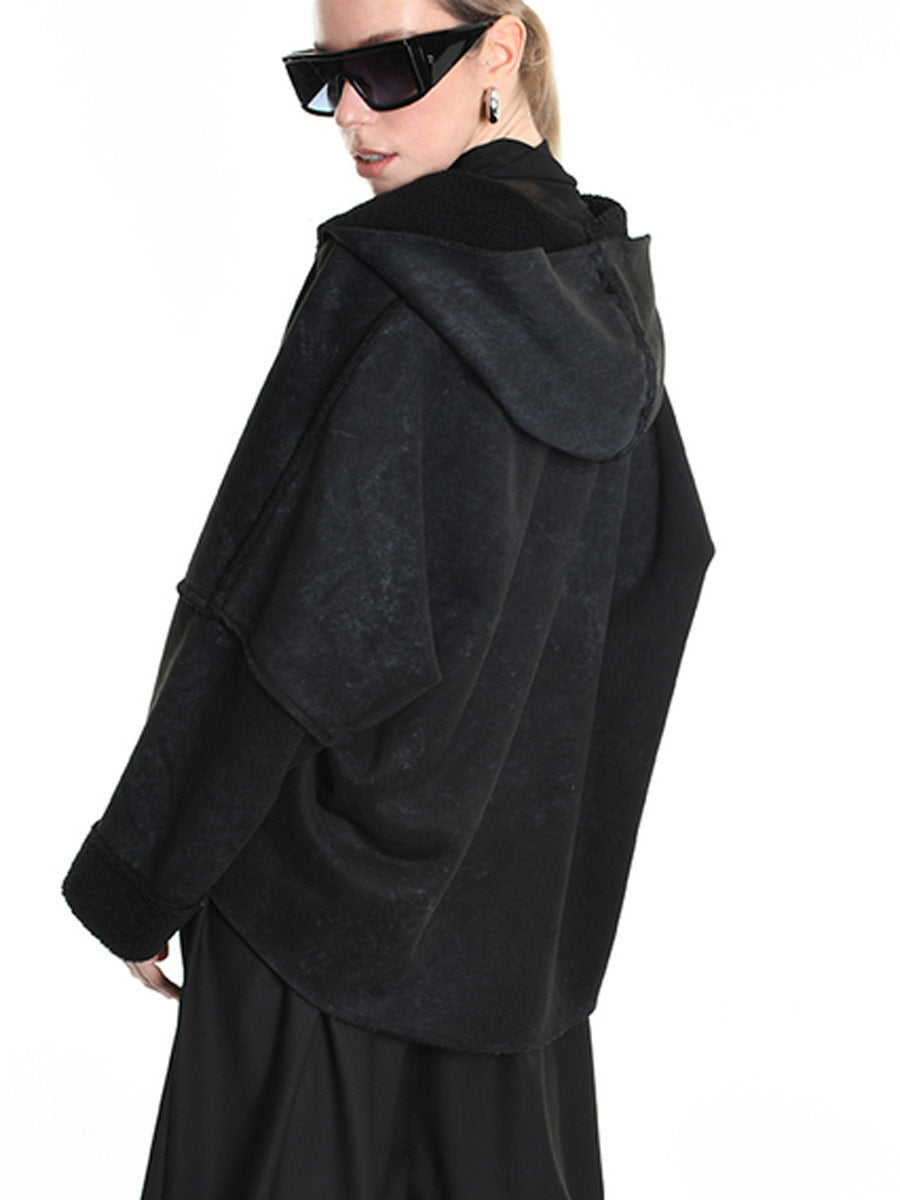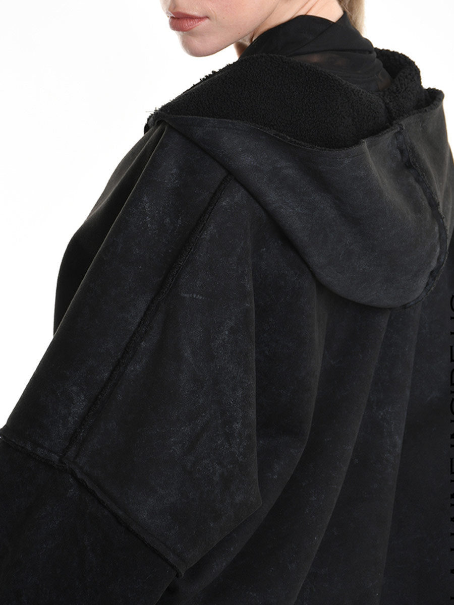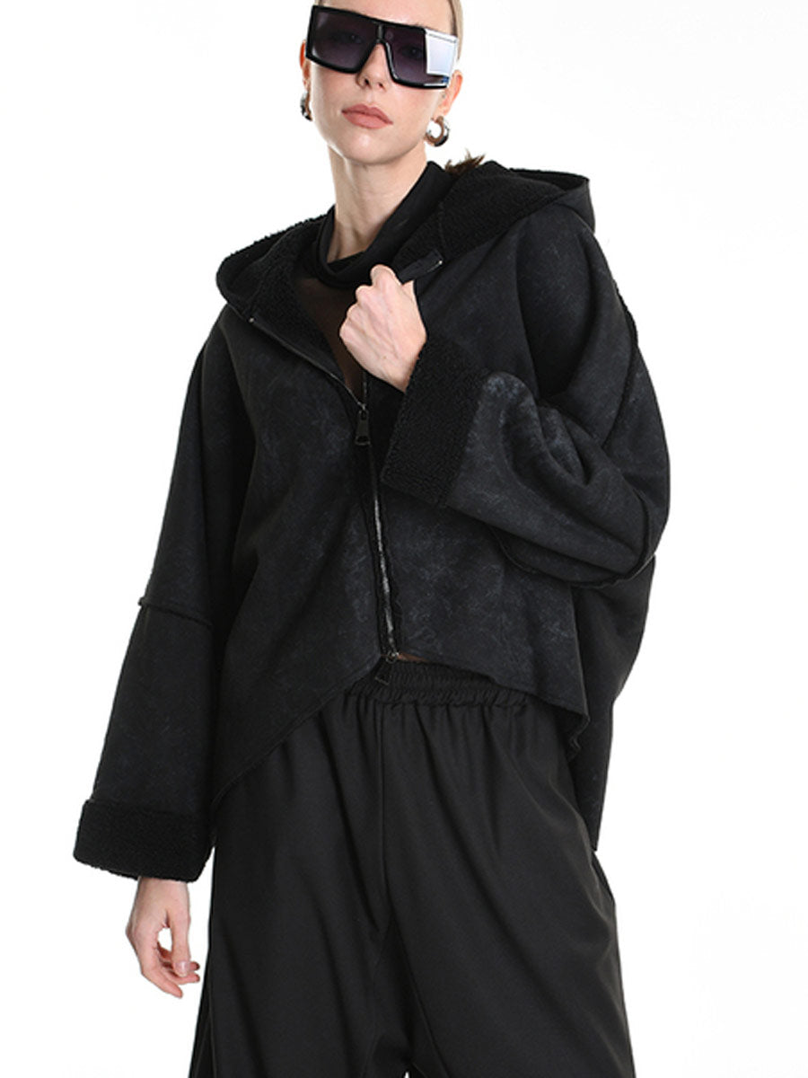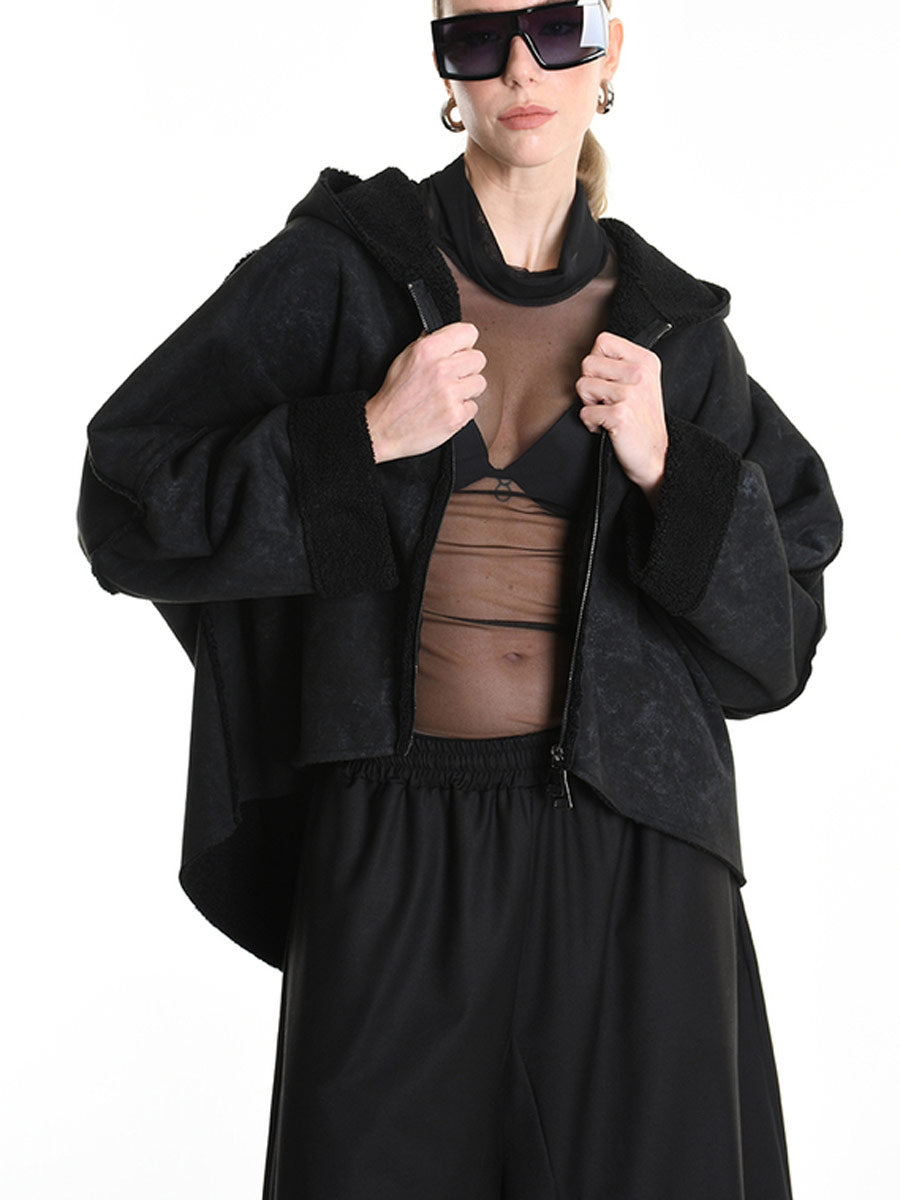 Fabulous black faux suede hooded zip jacket, with cosy shearling lining