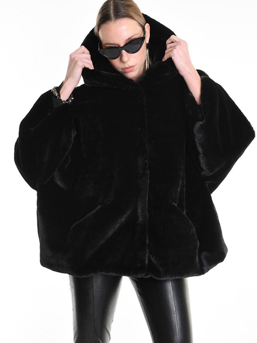 Sumptuous and soft, black, faux fur, mid length, cape/jacket with long sleeves
