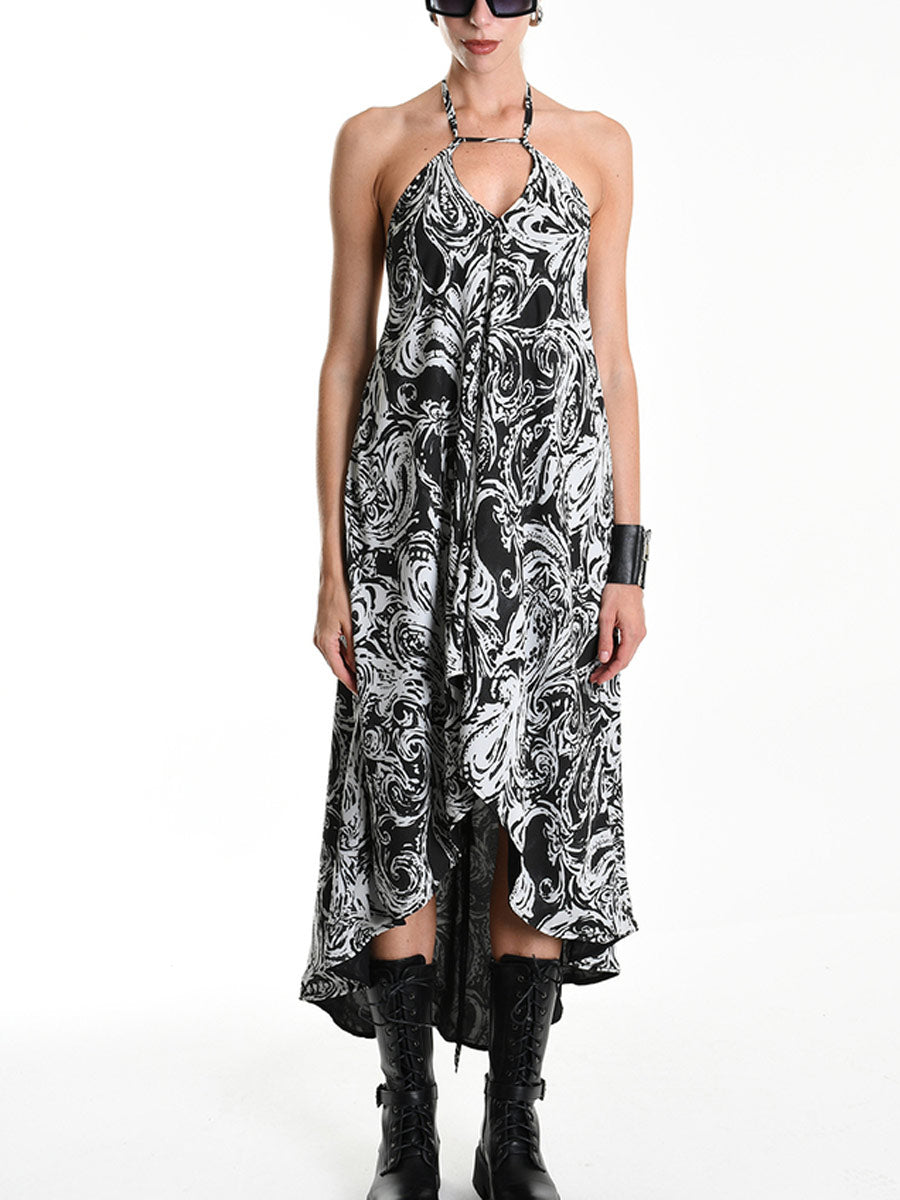 Swirl about in this Sumptuous asymmetric mid length dress, with fabulous detailing!