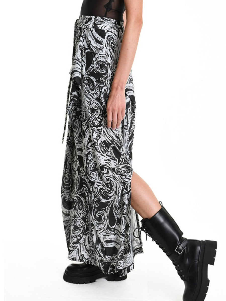 Perfect palazzo wide leg pants in a dramatic black and pattern, in soft georgette