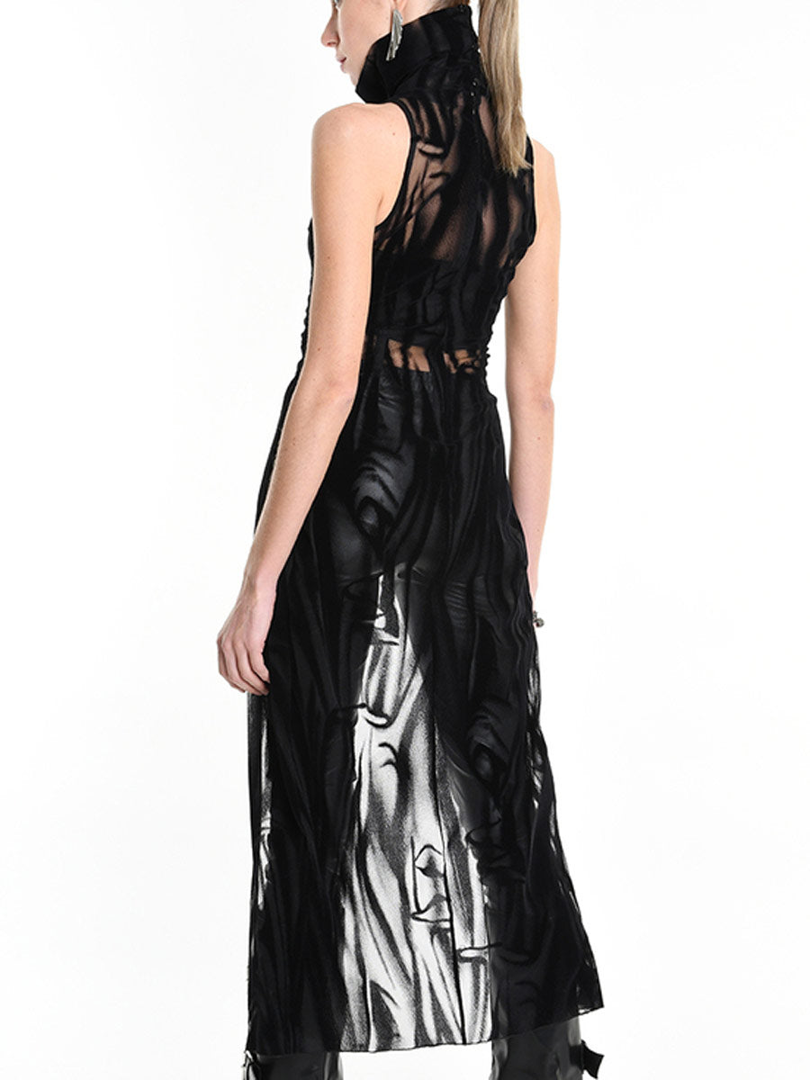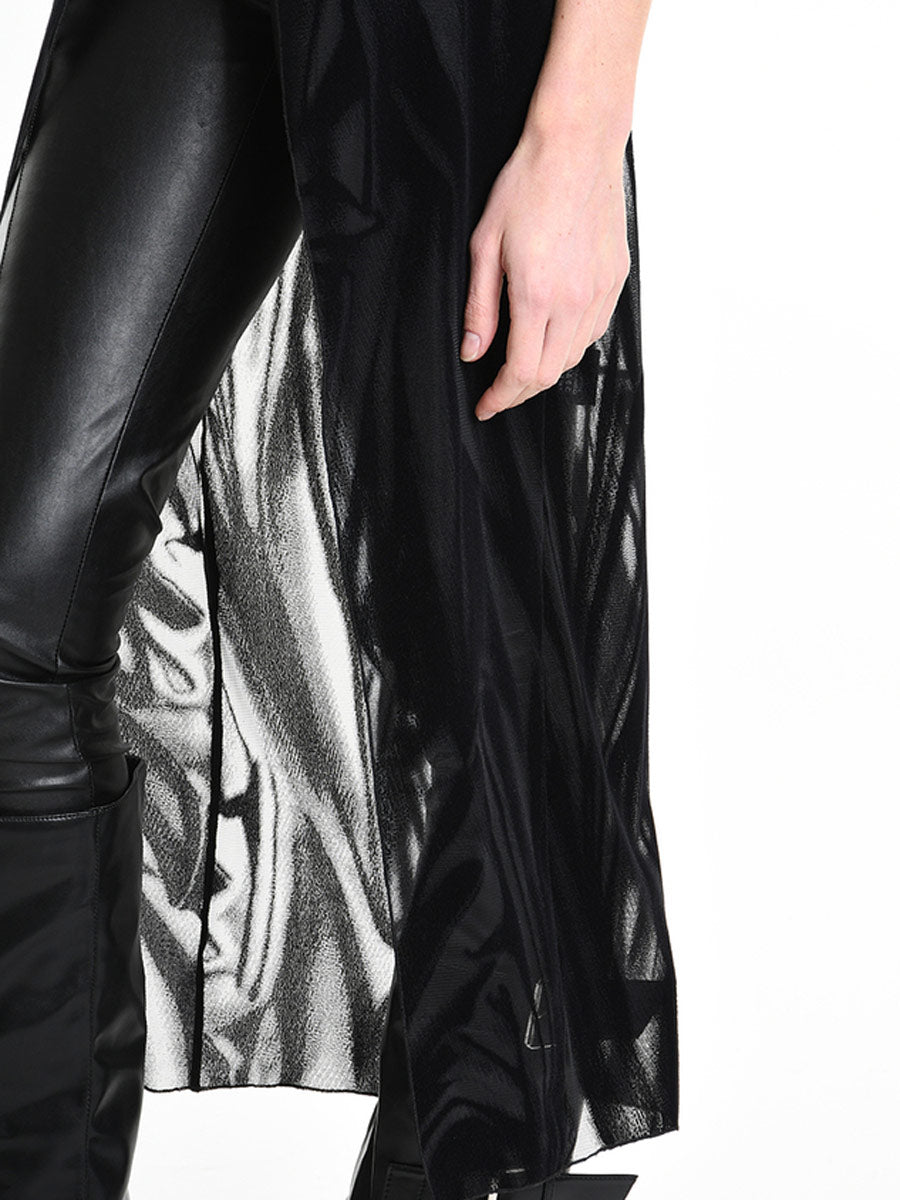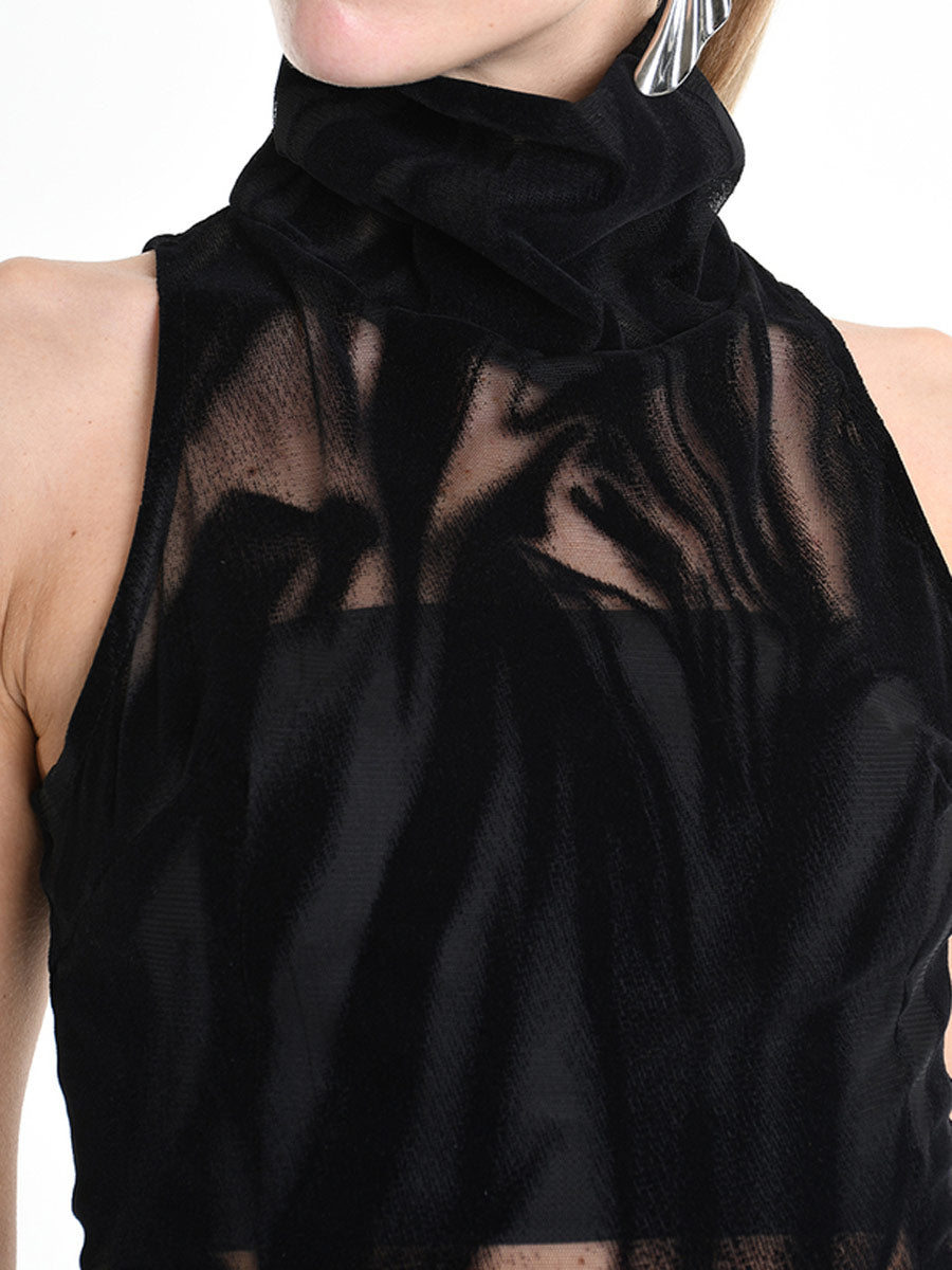 Unique and stunning black sheer tulle and devore velvet, sleeveless long tunic