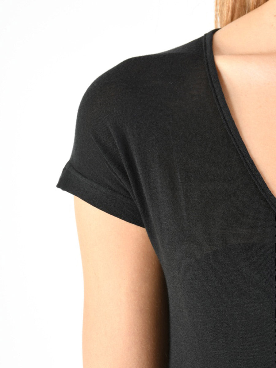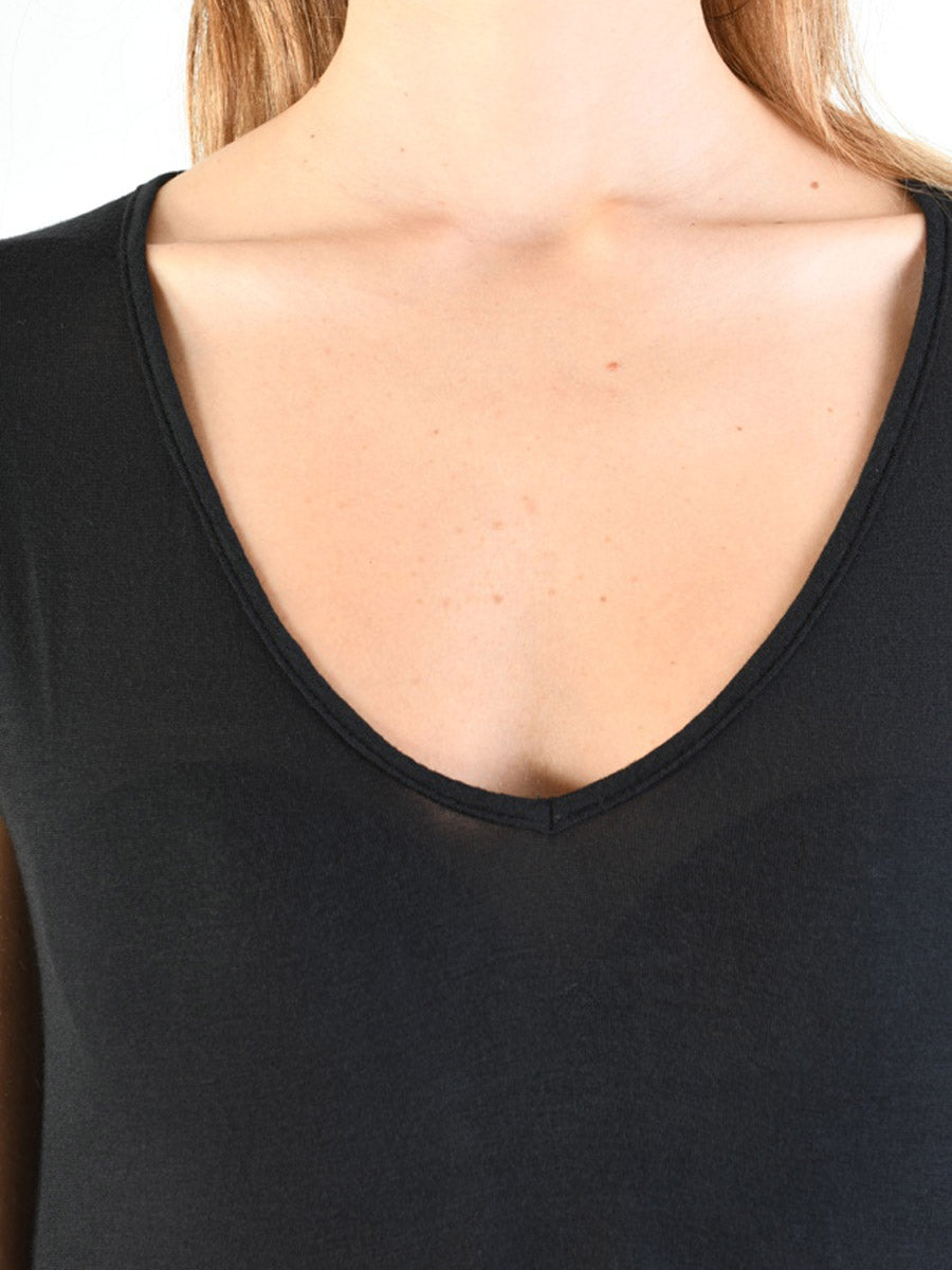 Asymmetric Viscose silk tshirt.  Drop sleeves and V neck, drop asymmetric side.
