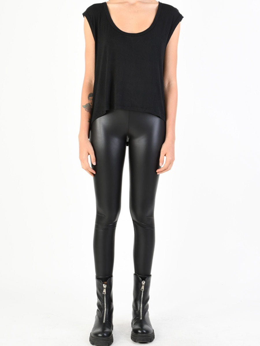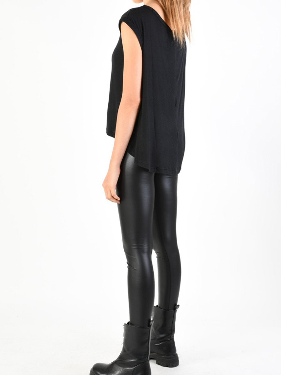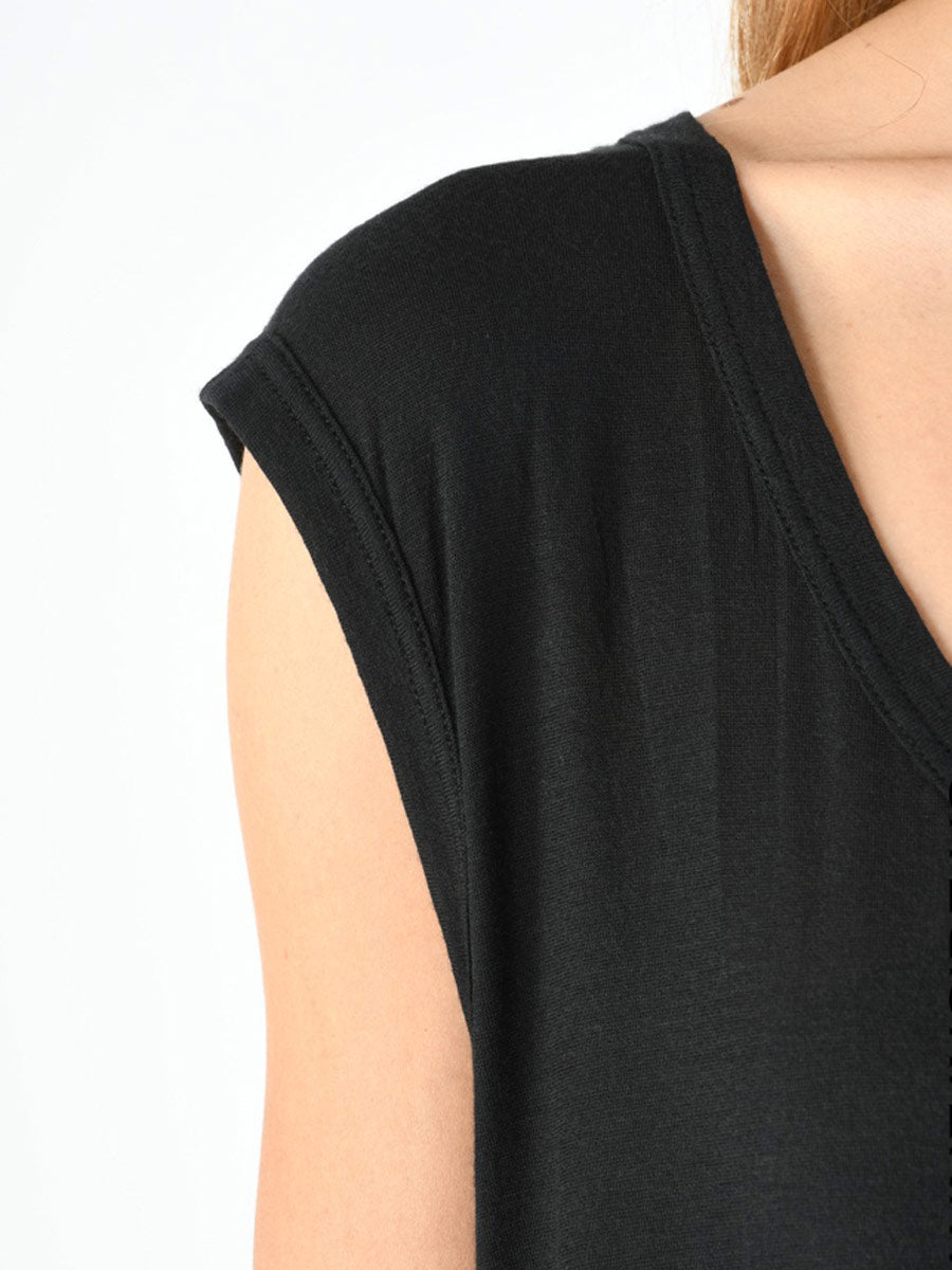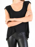Asymmetric drop shoulder sleeveless tshirt in silk viscose.    Higher front - drop back hemline.