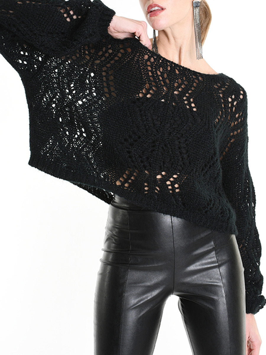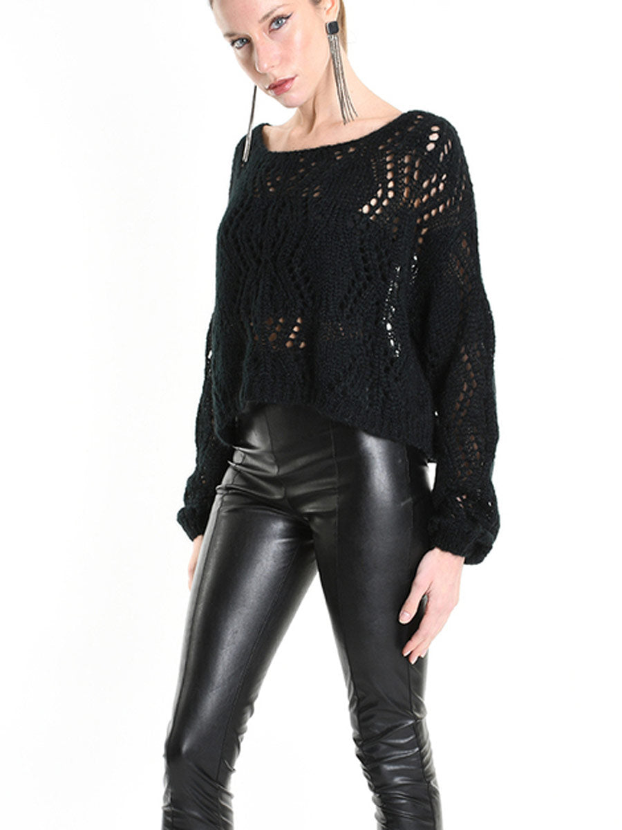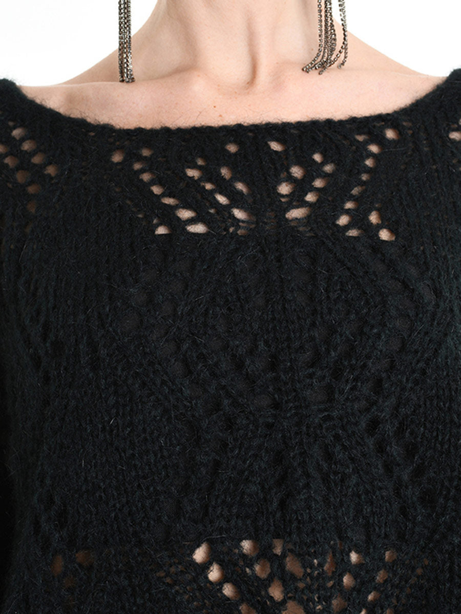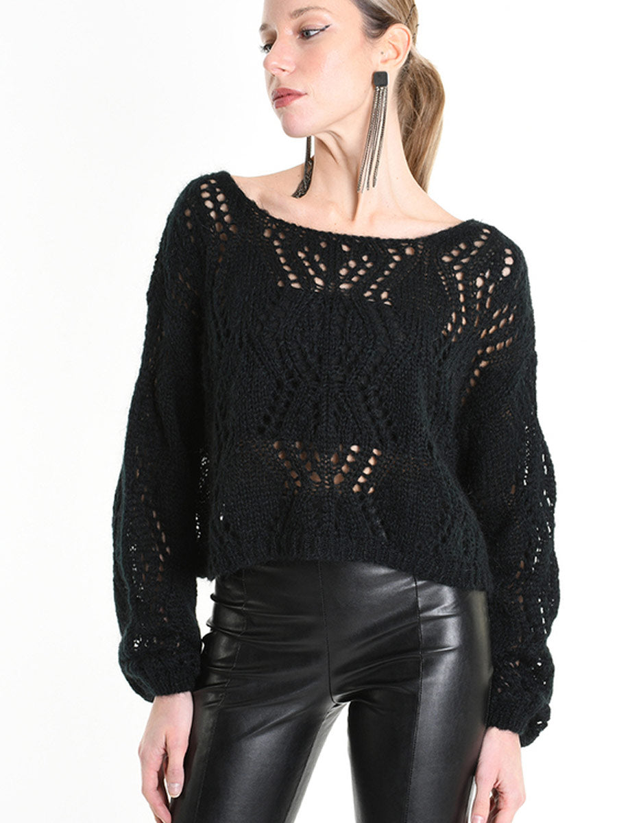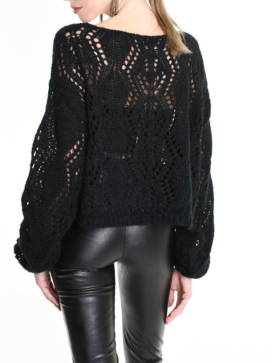 Super soft and sexy, black lacy mohair mix knit, long sleeve top