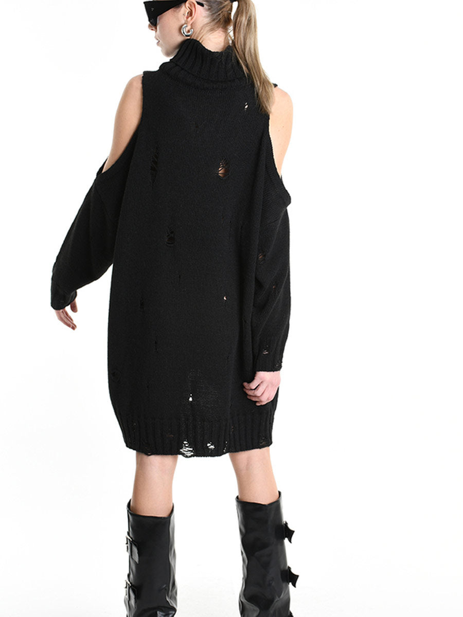 Super cute, Little Black Knitted Dress with Open Shoulder Detail