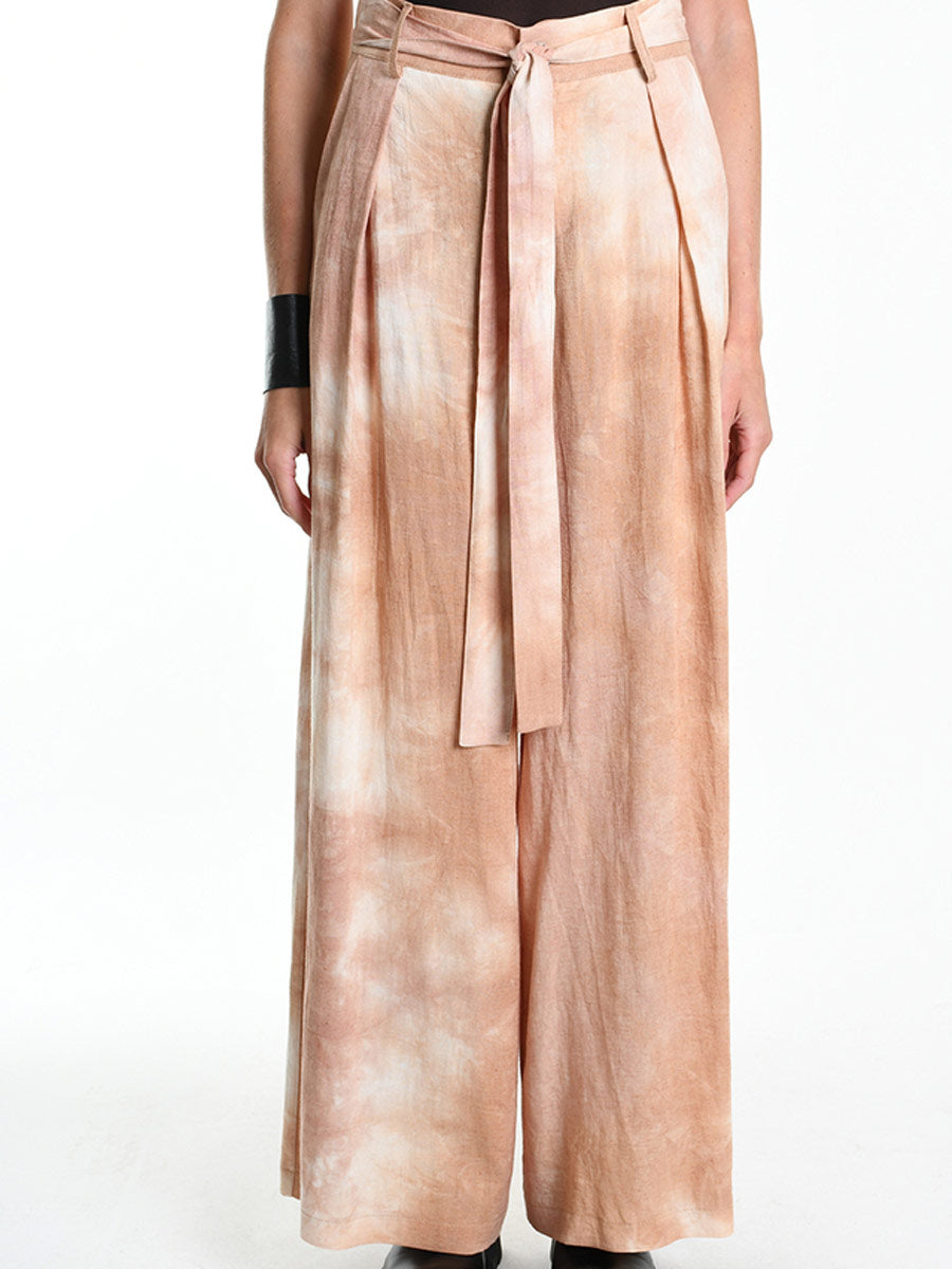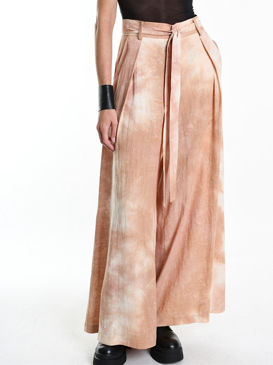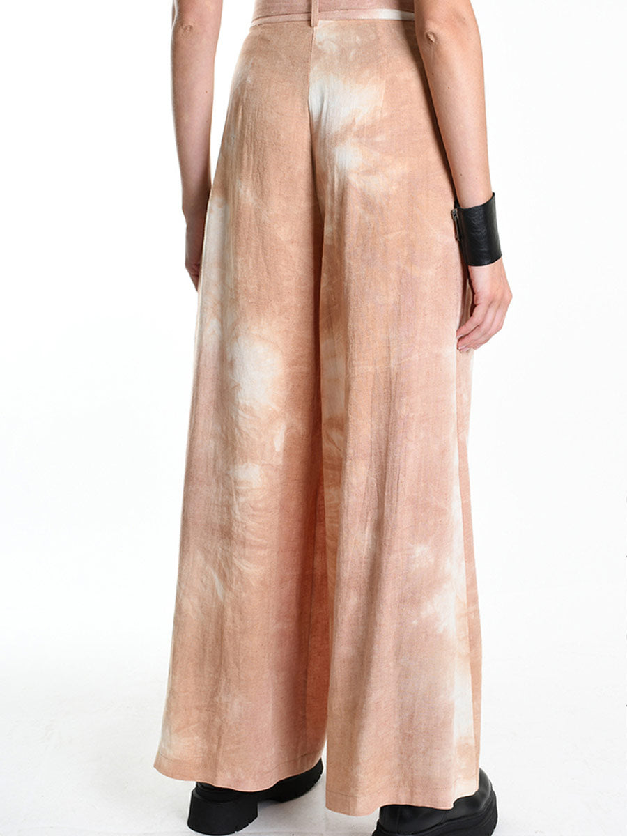 Wide legged, palazzo style pants in sand/tan coloured, tie dye effect, linen.