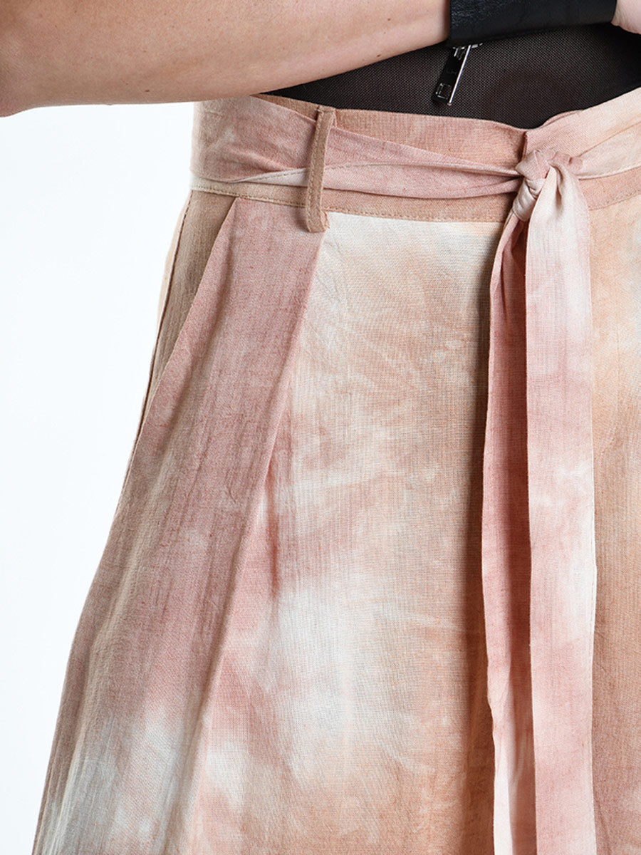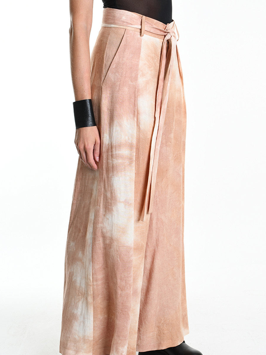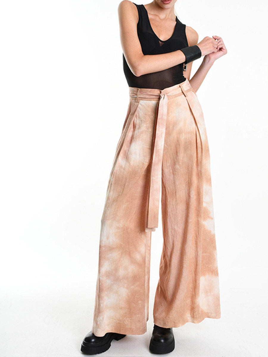 Wide legged, palazzo style pants in sand/tan coloured, tie dye effect, linen.