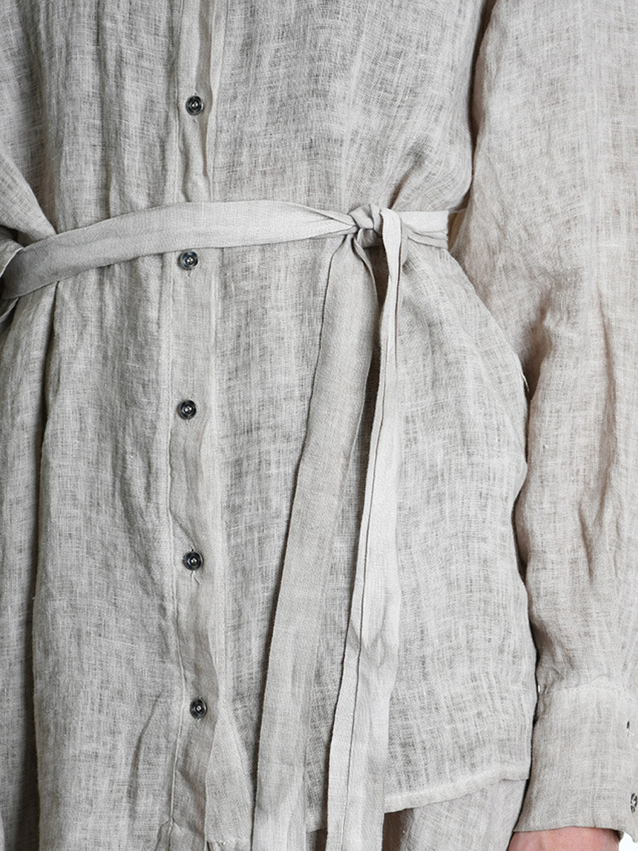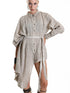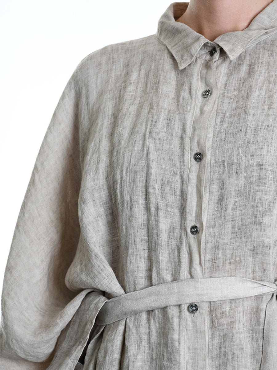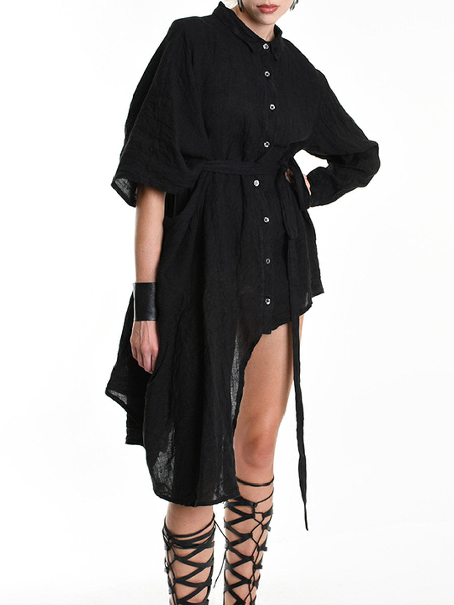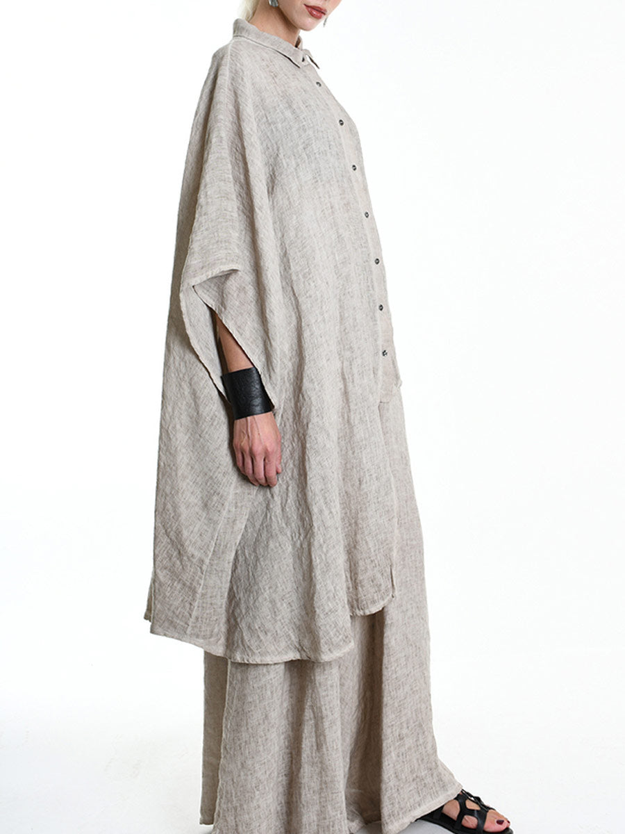 Bold look button through asymmetric linen shirt with long sleeve & aysmmetric cape sleeve, draped to longer length