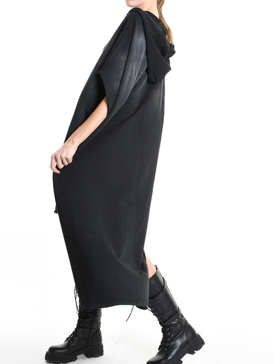 Be 'Traitor-ous' in this fabulous black, grey marble dye pattern, asymmetric, hooded dress