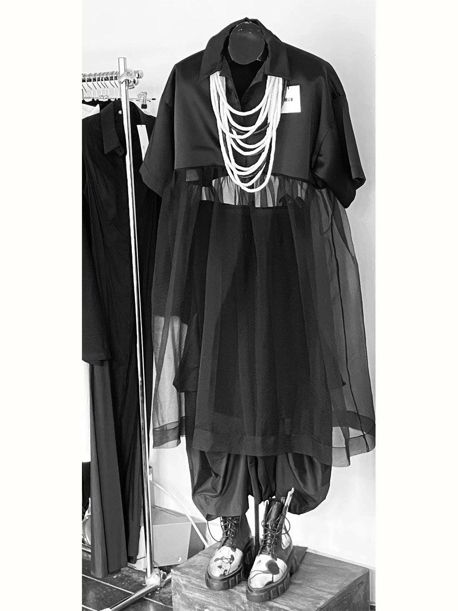 • With sheer mid length voile skirt. Just fabulous over trousers or skirt!