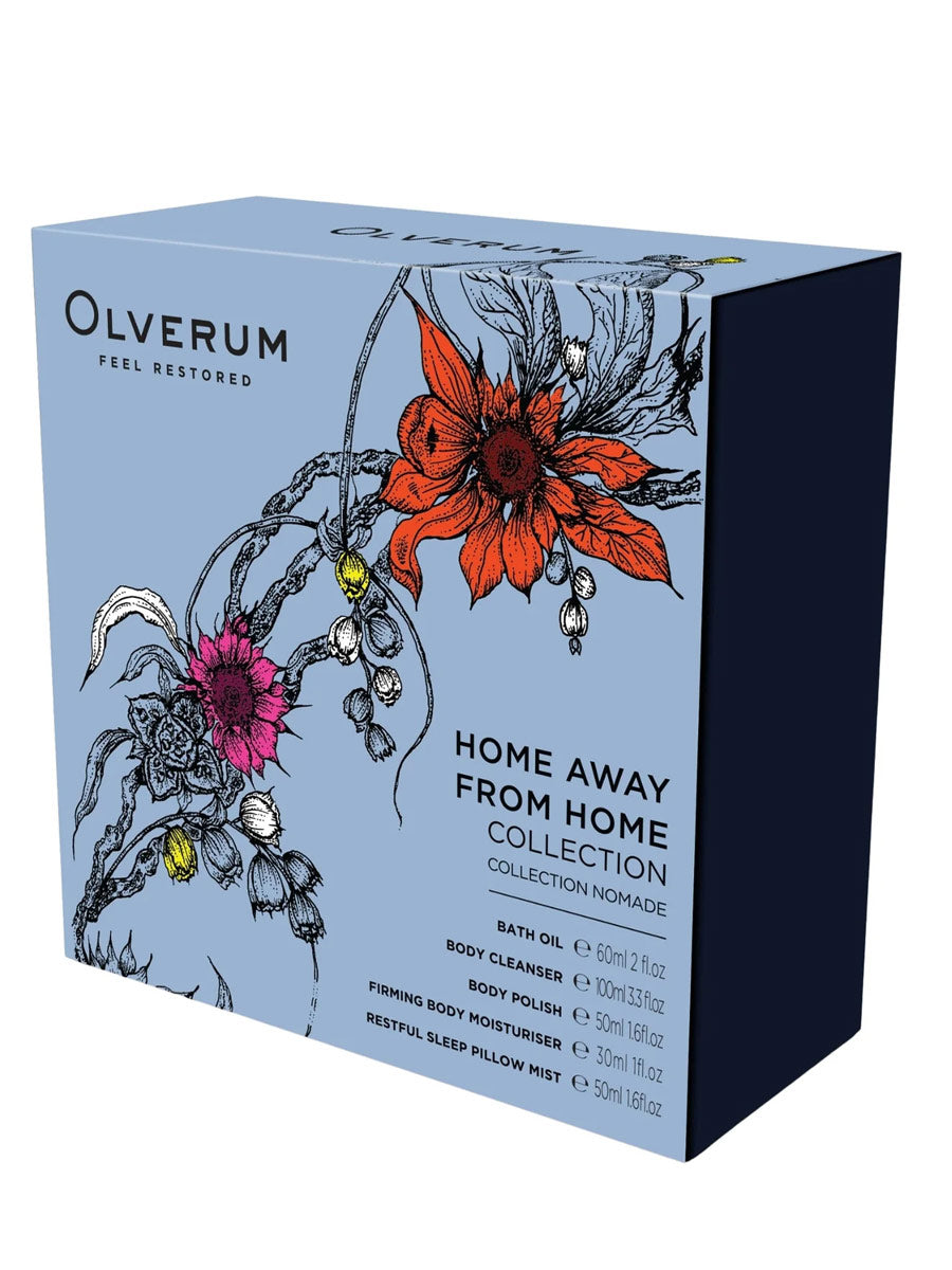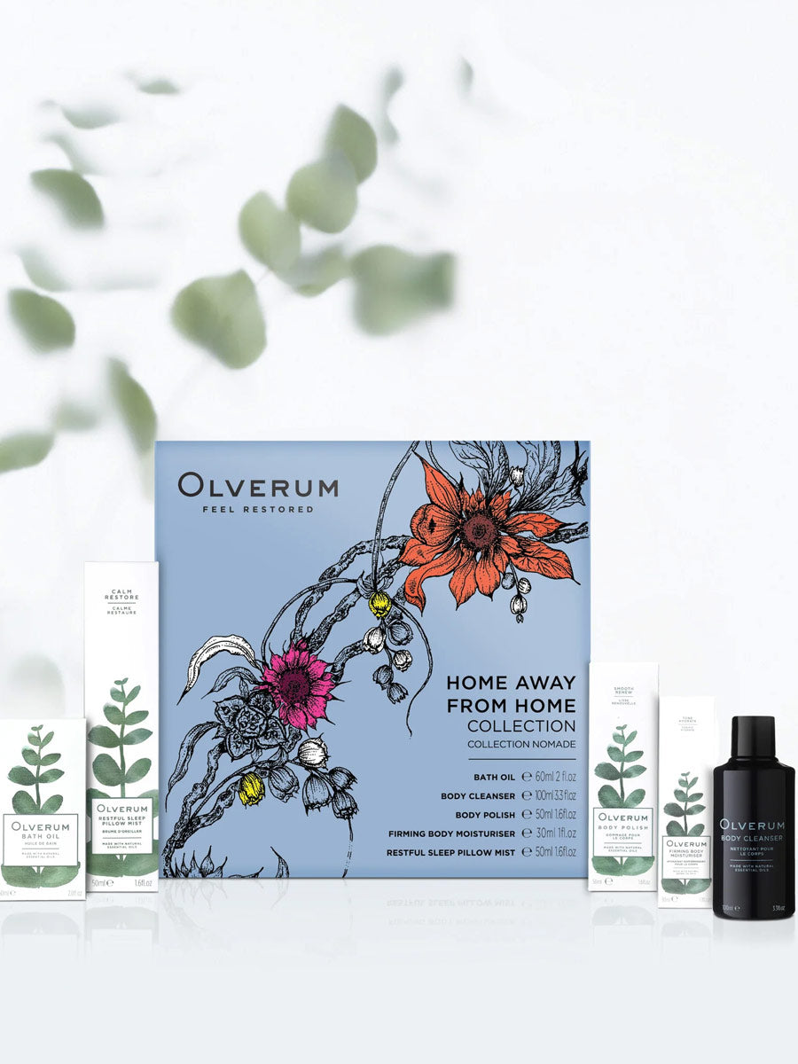The set comprises the iconic Olverum Bath Oil (60ml), Body Polish (50ml), Body Cleanser (100ml), Firming Body Moisturiser (30ml), and Restful Sleep Pillow Mist (50ml). Wherever you are, indulge in the restorative benefits of Olverum’s luxurious body care essentials.