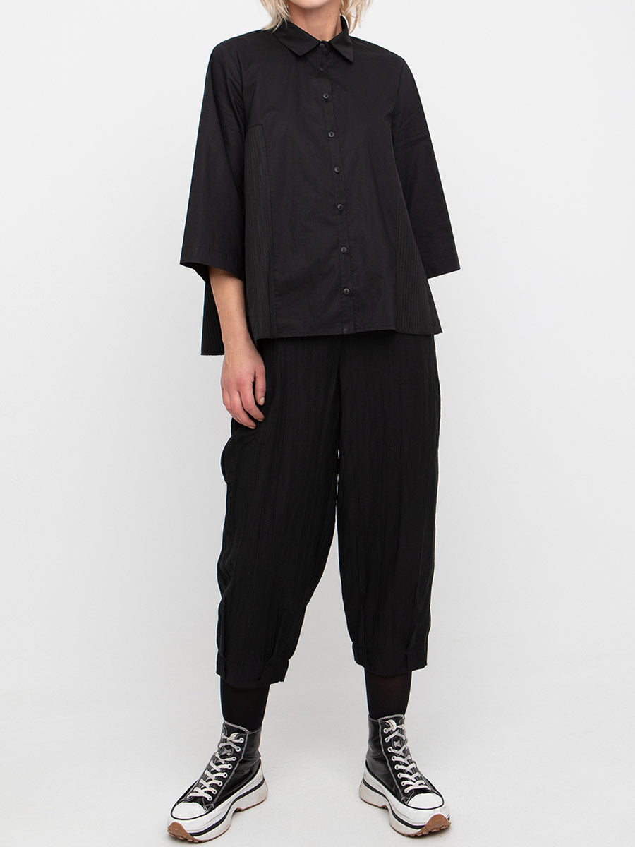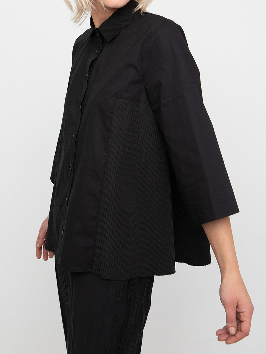 • Easy fit shirt or top with classic spread button collar and button through front. Slight flare to shaping