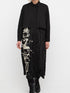 • Cropped over shirt covers layer of plisse material to maxi length skirt, with bold and dramatic printed black and white 'painted' panel on front
