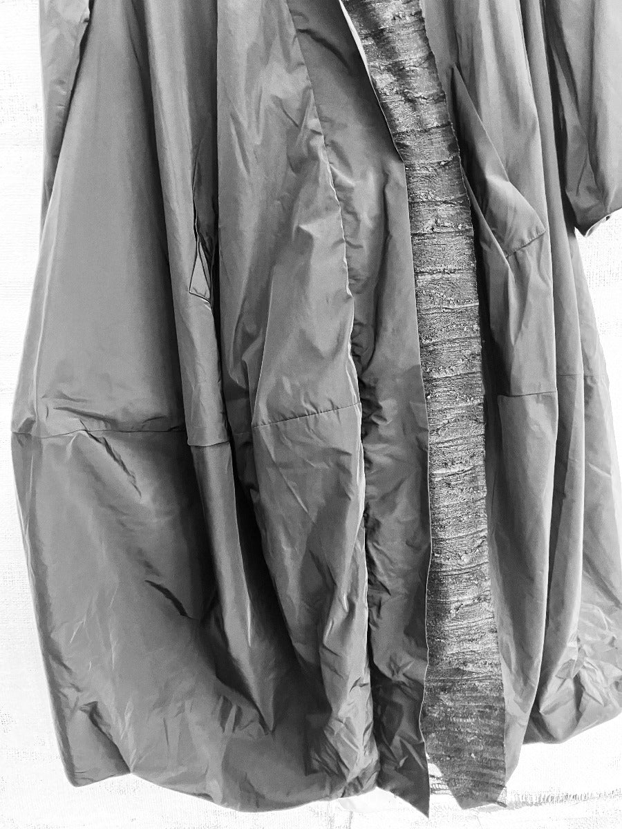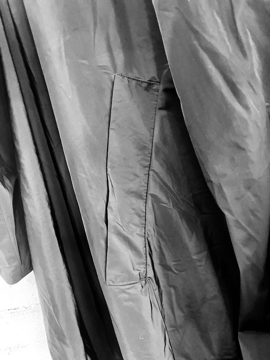 • REVERSIBLE: Can be worn with distinctive off-white cotton/black splatter design lining as main coat