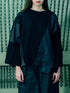 • Boat neck, wide fit, asymmetric jersey top, with soft fleece back; plus drop shoulder to long flare sleeves