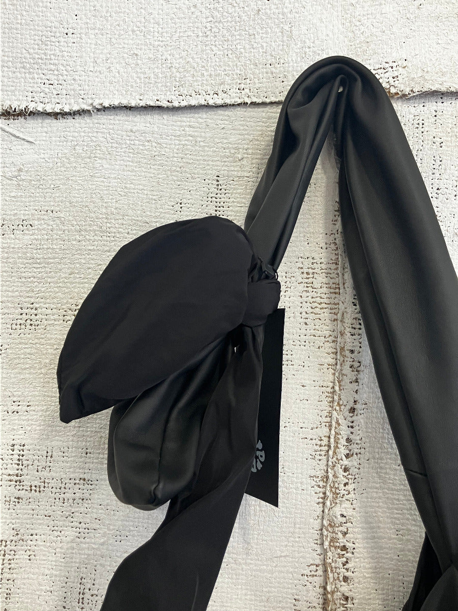 • Strap: one half Leather and the other Satin, drawn together in bow tie. Up to 80 cm length