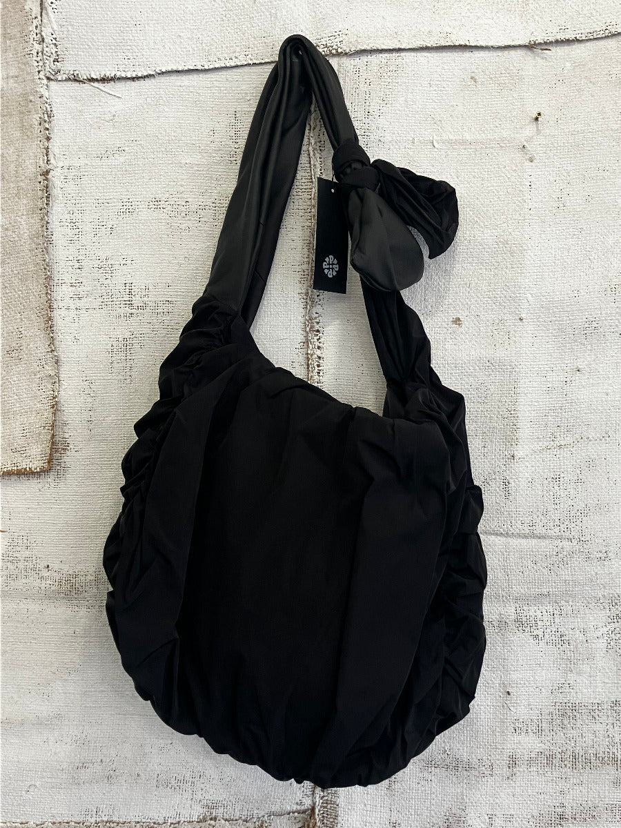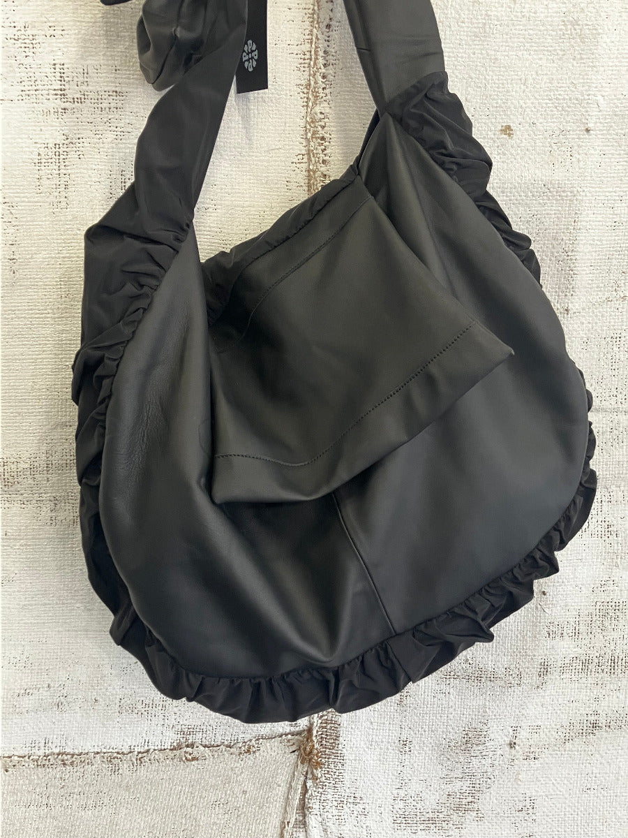 Beautiful Shoulder Bag: Black Leather and Satin polyester