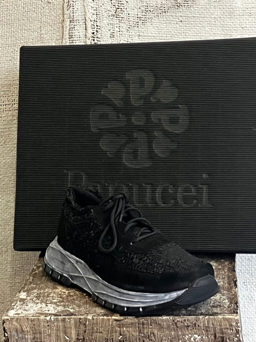 Black Leather Lace up Trainer with Distressed Grey Sole