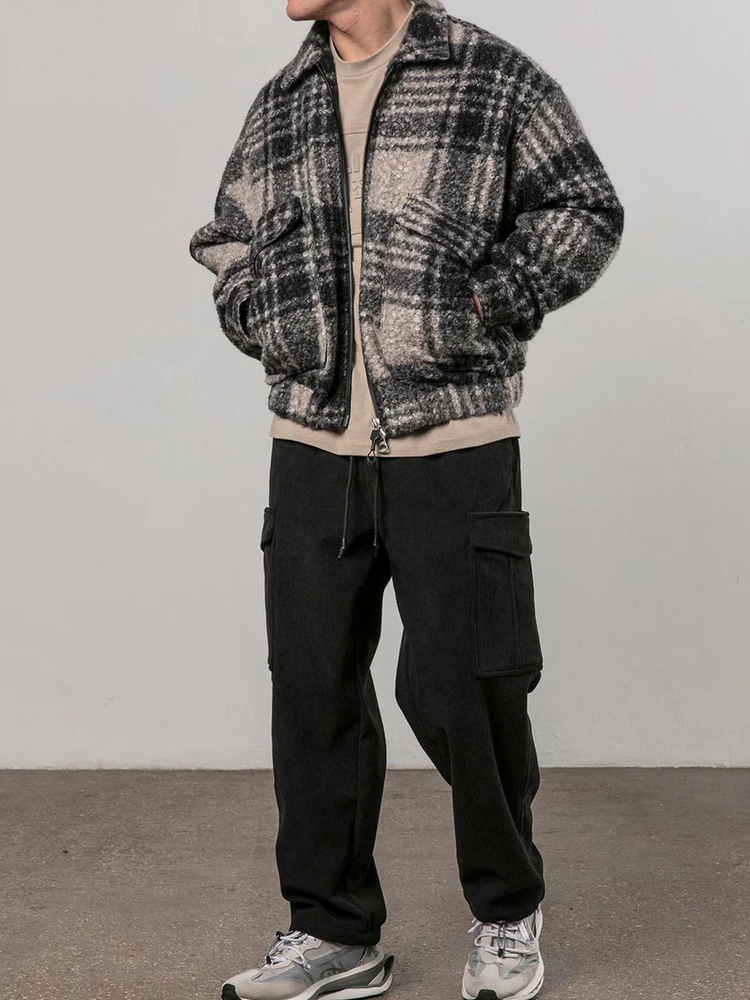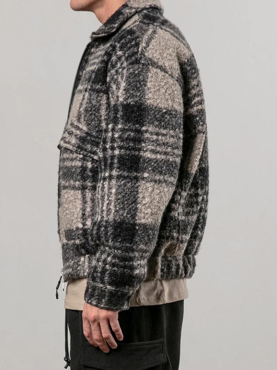 The luxurious Check Bomber in Fawn and Grey boasts a relaxed oversized fit, dual-function zipper, elastic waistband, dual-entry patch pockets, and a signature RELIGION logo tab. Perfect for chilly days.