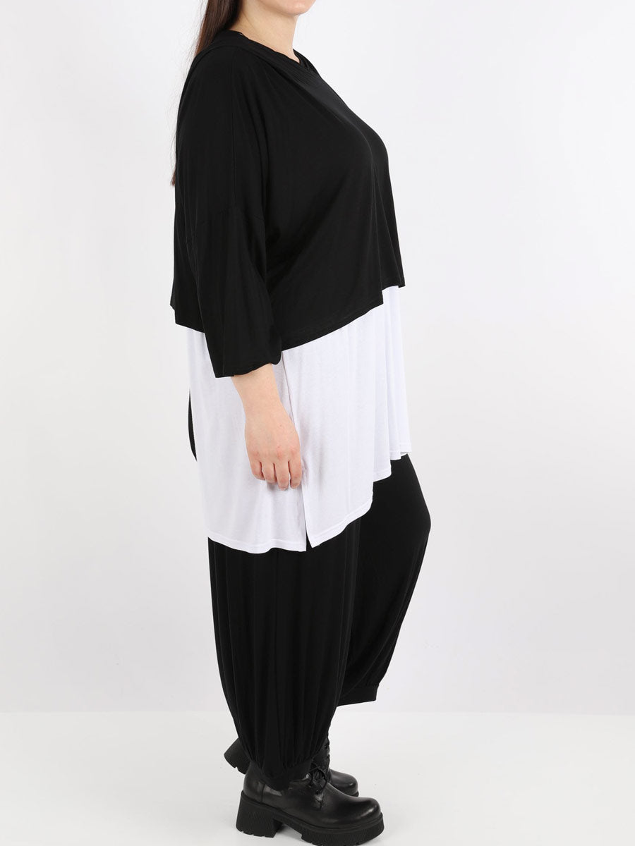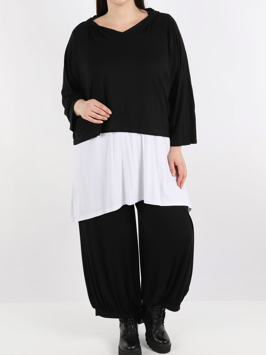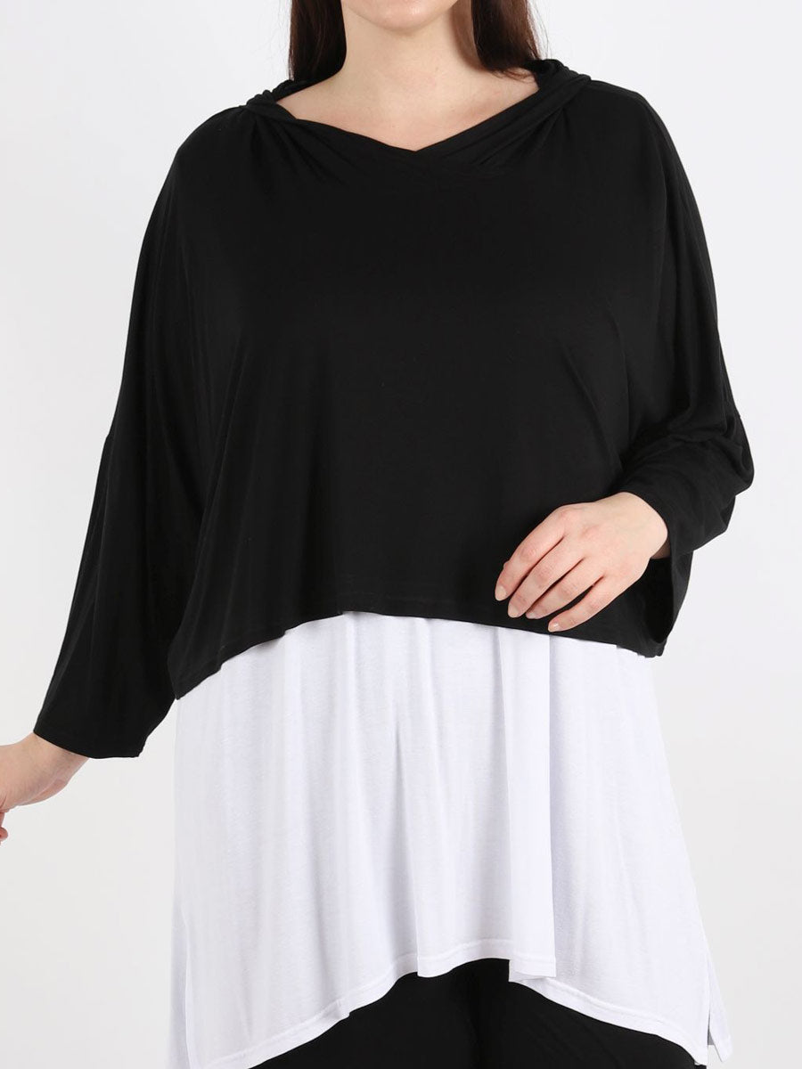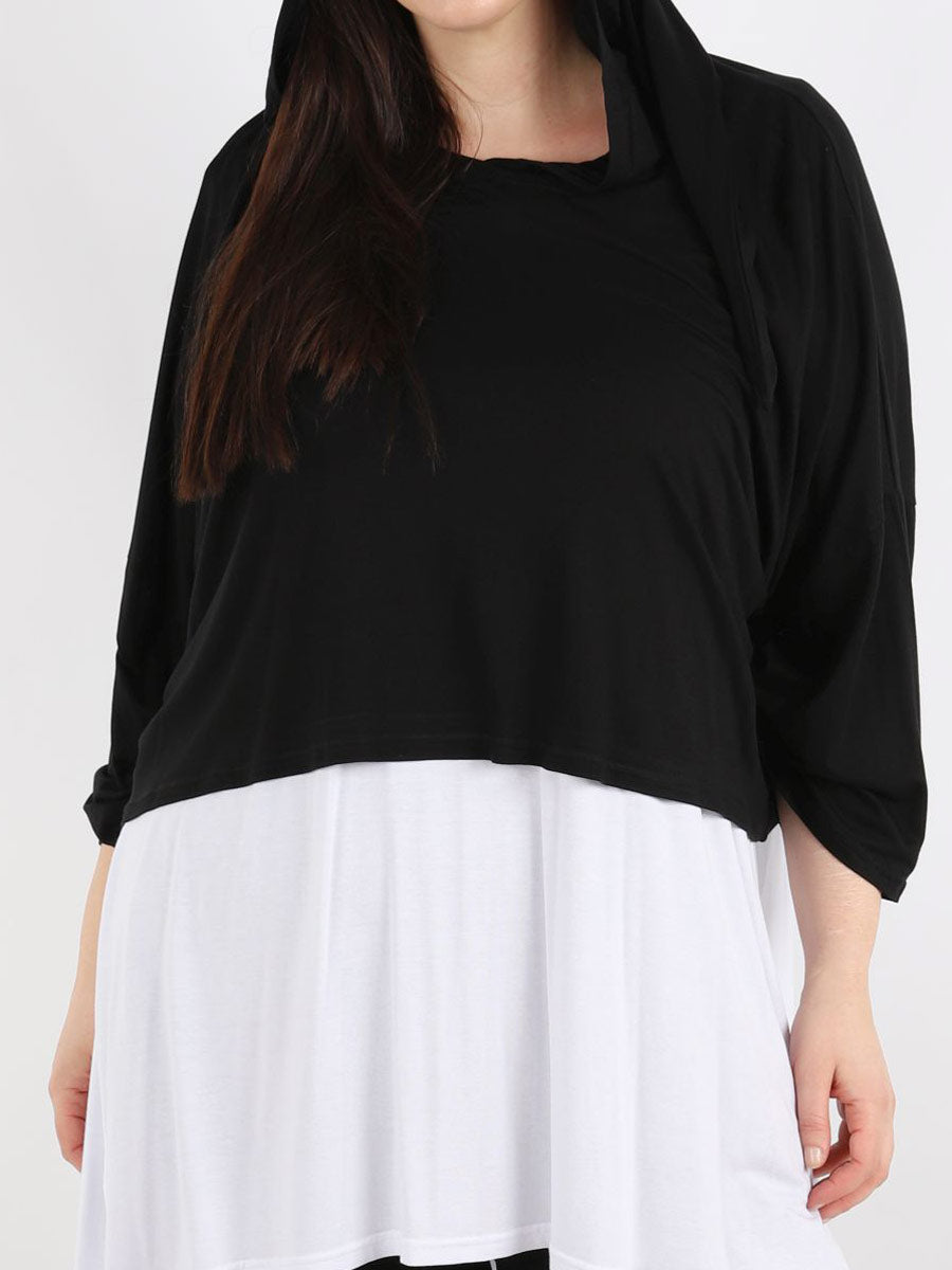 Soft jersey top with long pointed hood.   Wide boxy and  oversized - great for layering or over fitted dress - or team with the jersey harem pant.
