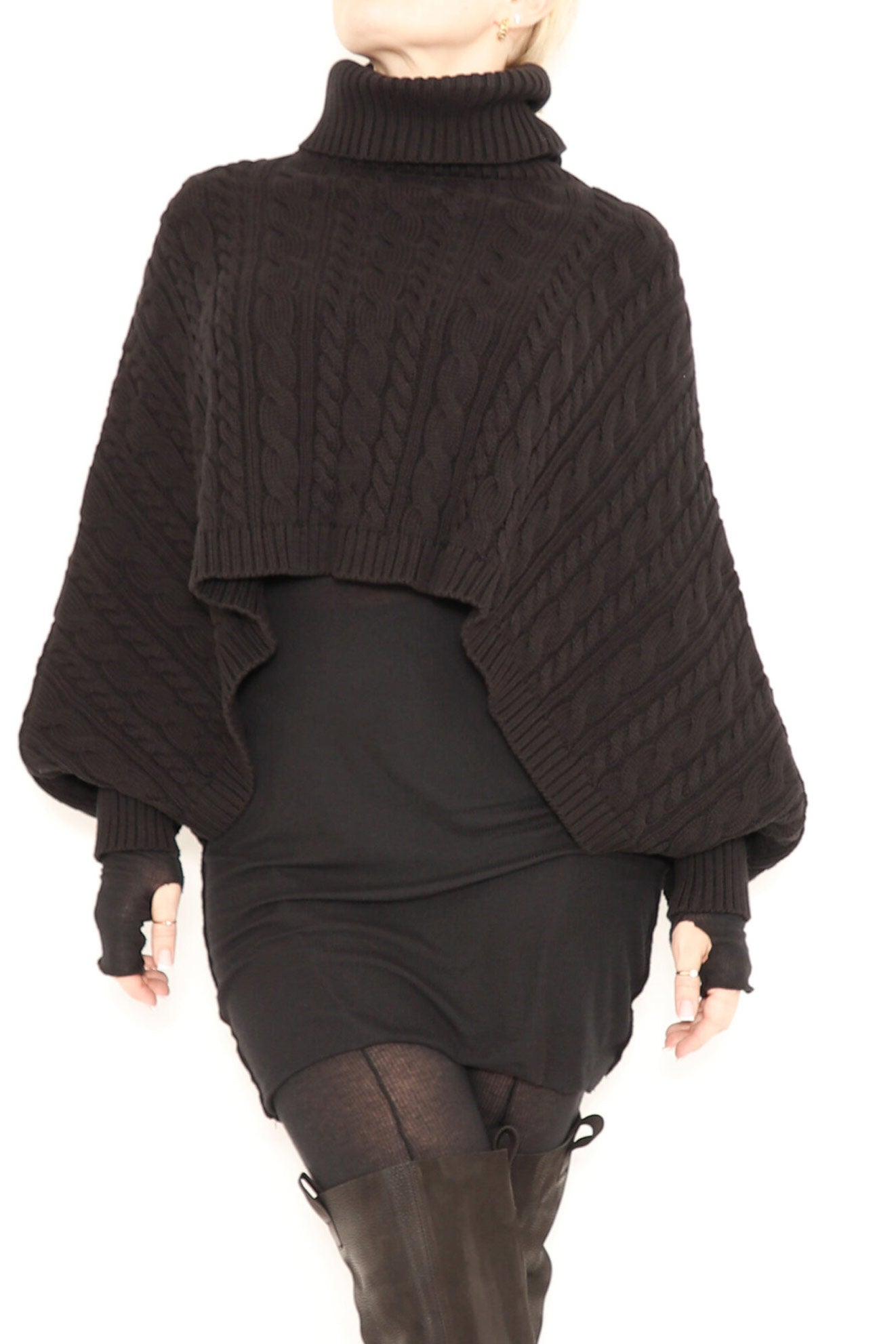 Upgrade your wardrobe with the luxurious SORT ARRHUS "Agostina" sweater. This exclusive piece is made from 100% organic cotton features a cable knit design, in an elegant rollneck poncho style.  Finished with fitted sleeves and dropped back hem adds a sophisticated touch. Elevate your sense of style with this unique sweater.