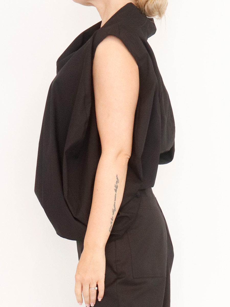 • Gorgeous rounded neckline which stands up at the back and falls asymmetrically at front.