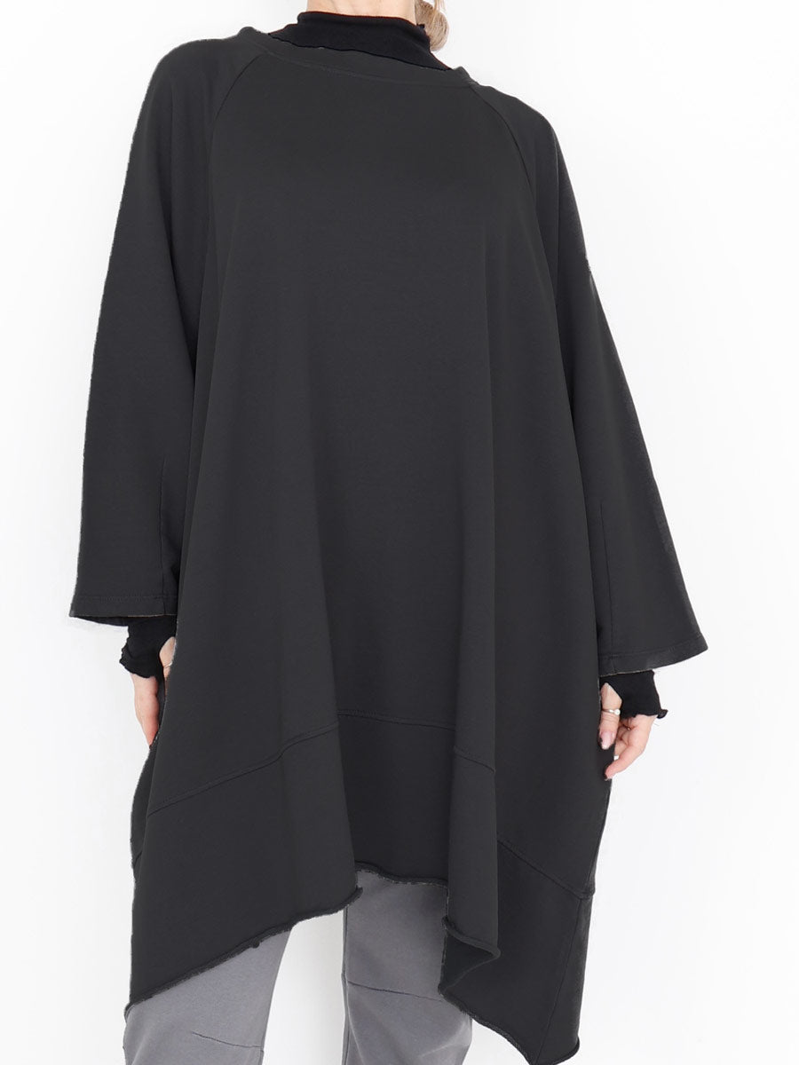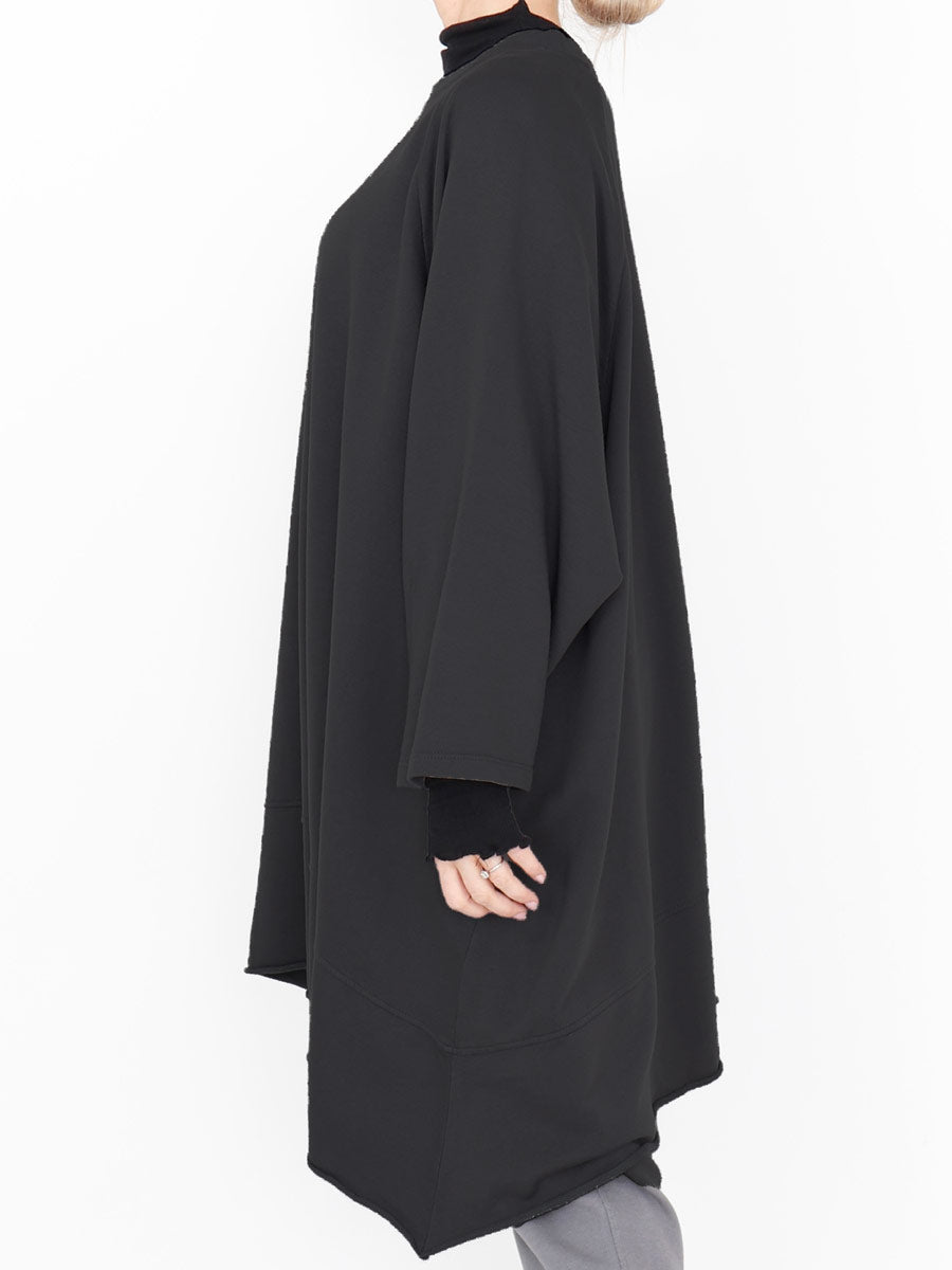 • Rounded stitched seam neck, with drop shoulders to long, straight sleeves with seam cuffs