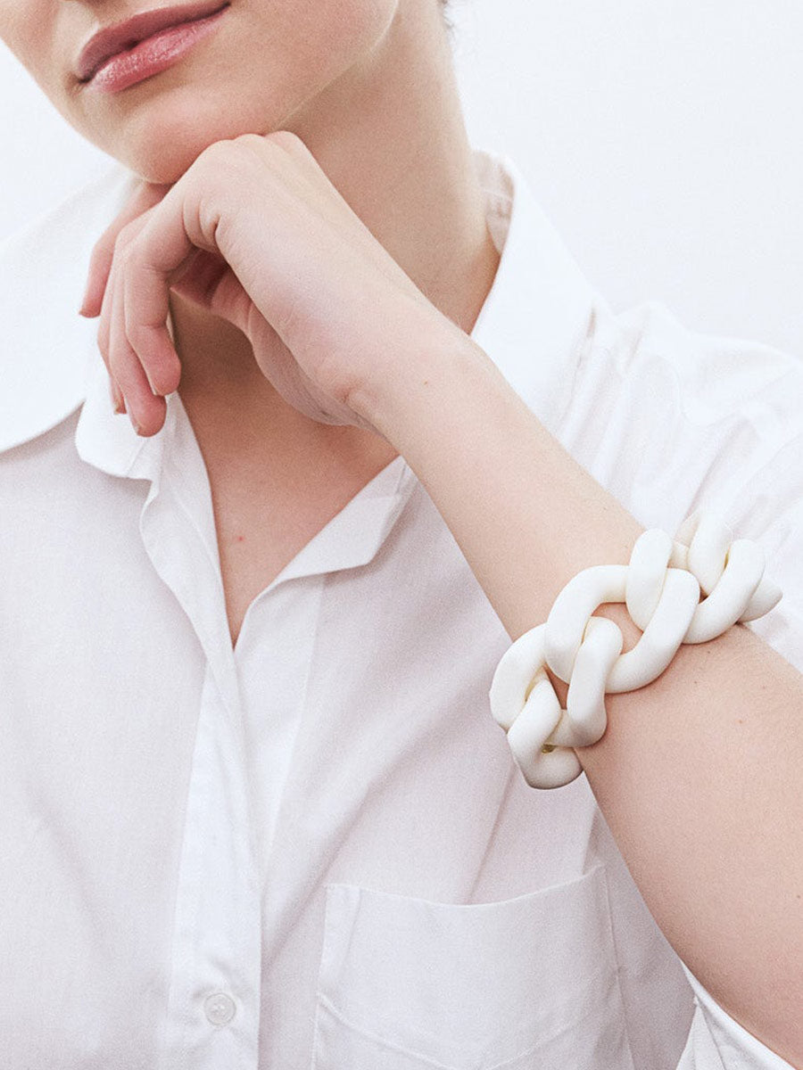 Big, Bigger, GIANT! Make a statement with the XXL version of our bracelets. Despite the opulent chain element, the feather-light acetate links nestle around every wrist for perfect wearing comfort. More aesthetics and attention is not possible.