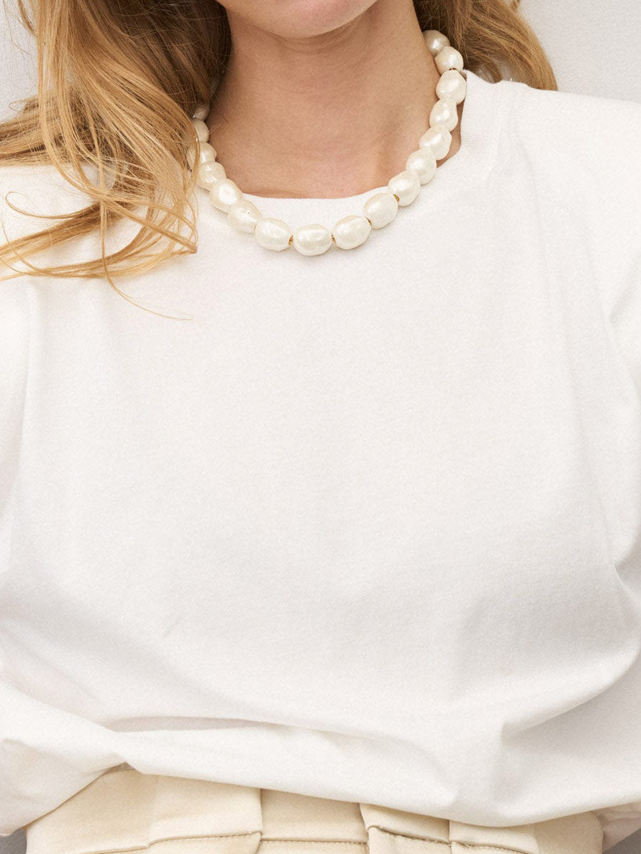 The organic pearl Necklace short is an elegant necklace, the organically shaped pearls are graceful around the neck. This timeless creation combines naturalness and elegance in a harmonious way. The delicate pearls give every occasion a subtle sophistication.