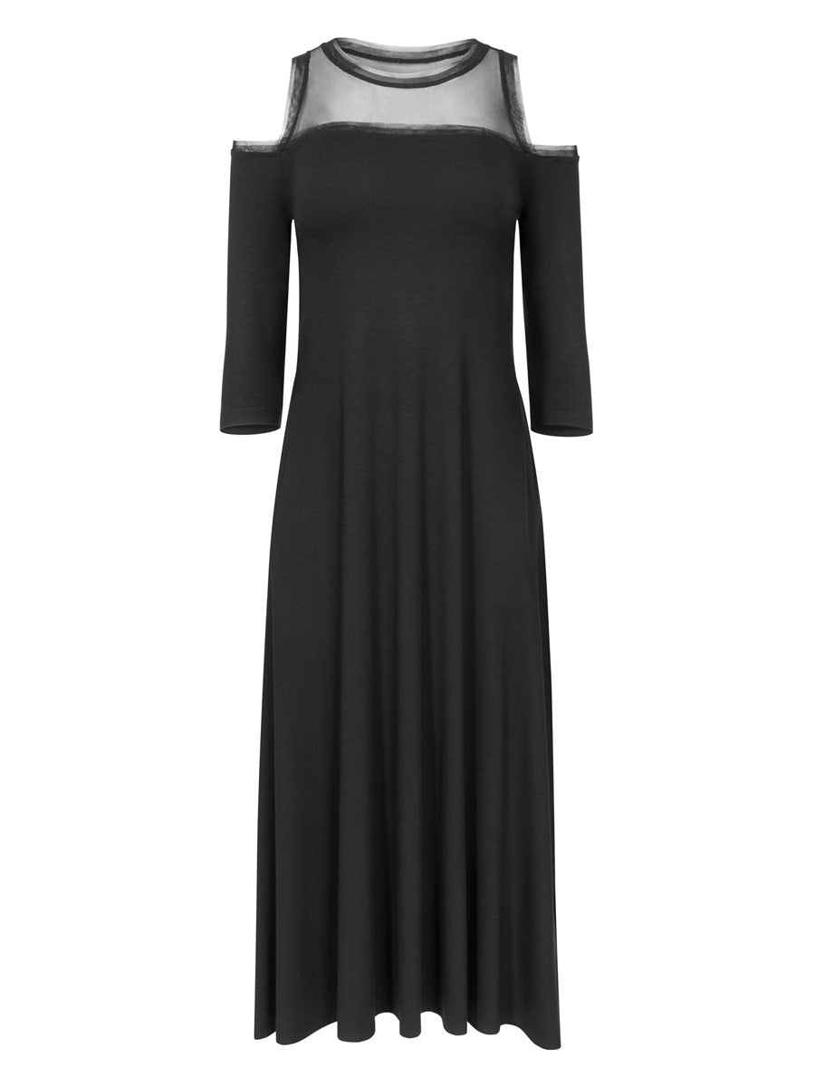 • Soft, easy to wear, A shape, mid-length dress in mid-weight black jersey.