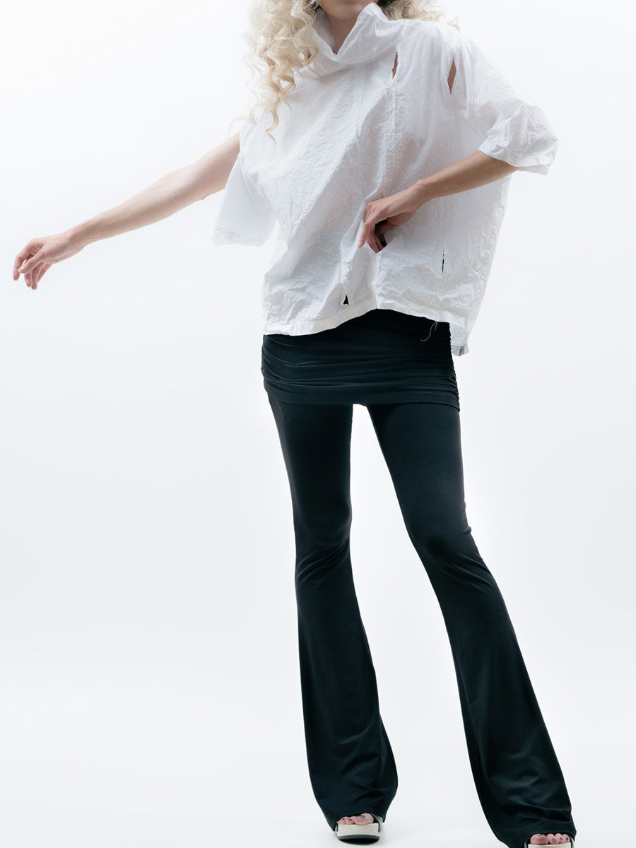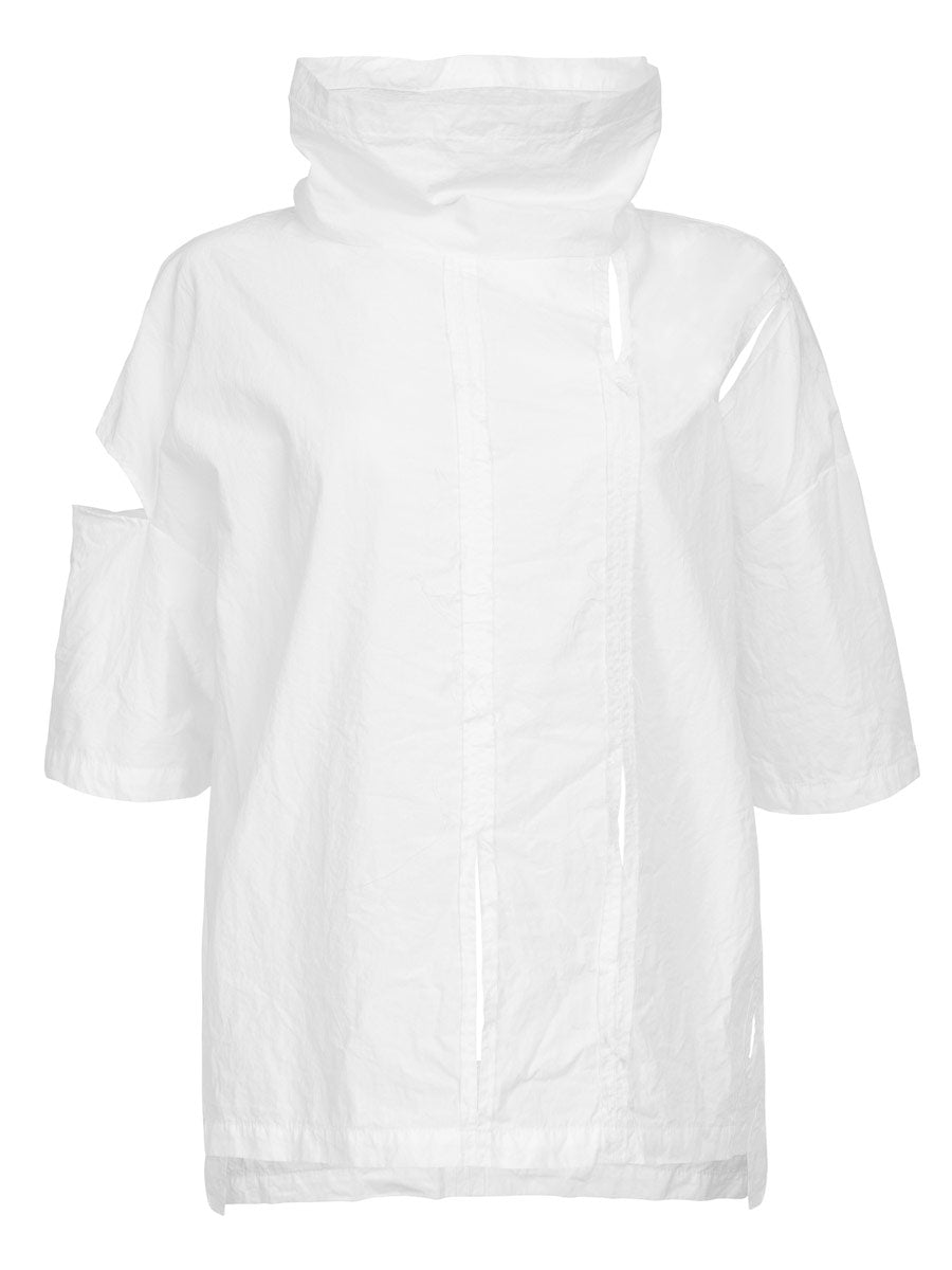• Subtle 'slash' opening on one shoulder to reveal bare skin.
